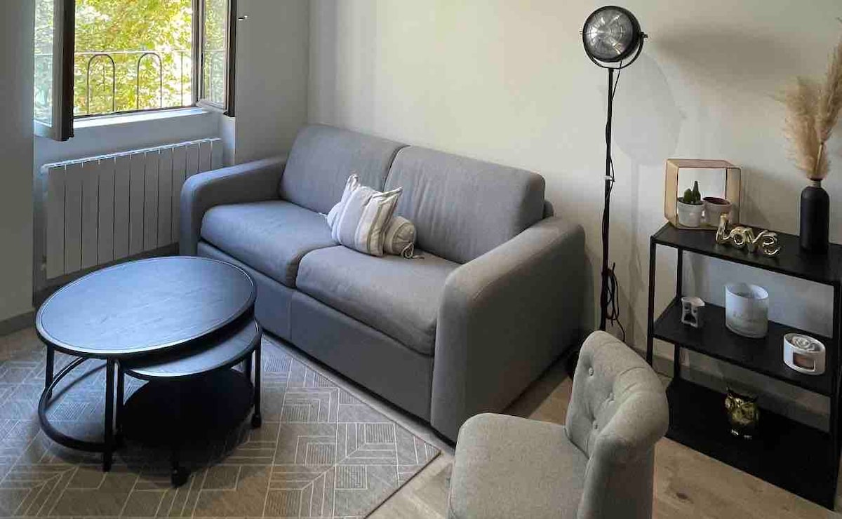 सुंदर आणि पूर्णपणे नूतनीकरण केलेला 22m2 स्टुडिओ, उच्च गुणवत्तेचा मर्फी - बेड, उबदार आणि फंक्शनल लिव्हिंग रूमसह, लियॉन ऑपेराच्या शेजारील 1 ला अॅरोंडिसमेंटमध्ये आदर्शपणे स्थित आहे. जवळच्या सर्व सुविधांसह चैतन्यशील आसपासच्या परिसरात स्थित. अनेक सुविधा वॉशिंग - ड्रायिंग मशीन, डिशवॉशर, नेटफ्लिक्ससह 4K टीव्ही, नेस्प्रेसो कॉफी मशीनसह उपलब्ध आहेत. बेड लिनन, 2 बाथ टॉवेल/व्यक्ती, बाथ मॅट, किचन टॉवेल.