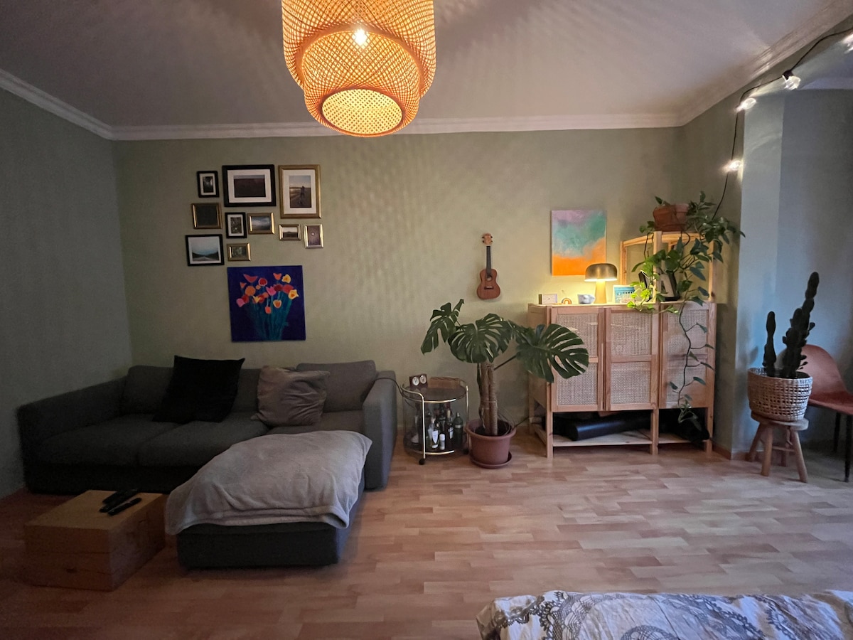 माझ्या लहान परंतु फाईन स्टुडिओमध्ये तुम्हाला कोलोनमधील एका अद्भुत मध्यवर्ती वास्तव्यासाठी आवश्यक असलेले सर्व काही सापडेल: -->5 - स्टार स्वच्छता --> मध्यवर्ती ठिकाणी --> Netflix सह टीव्ही --> आरामदायक क्वीन साईझ बेड --> हायस्पीड वायफाय --> परफेक्ट पब्लिक ट्रान्सपोर्ट कनेक्शन्स --> वॉशिंग मशीन --> ओव्हन फंक्शनसह मायक्रोवेव्ह मोकळ्या मनाने! महत्त्वाचे: तुम्ही येण्यापूर्वी, तुमची ओळख व्हेरिफाय करण्यासाठी आम्हाला तुमच्या आयडीचे फोटोज आवश्यक आहेत.