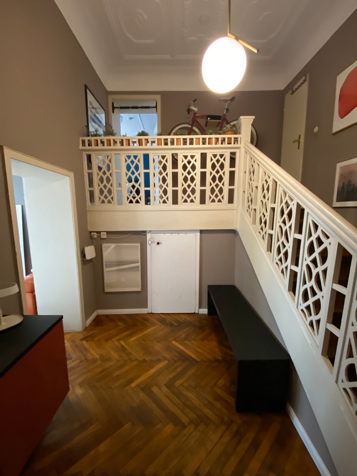 рдЕрдиреЗрдХ рдЯреНрд░рд╛рдо рдЖрдгрд┐ рдмрд╕ рд▓рд╛рдИрдиреНрд╕ рдЖрдгрд┐ рдХреЛрд▓реЛрди - рдПрд╣рд░реЗрдирдлреЗрд▓реНрдб рд░реЗрд▓реНрд╡реЗ рд╕реНрдерд╛рдирдХрд╛рдкрд░реНрдпрдВрдд рдЪрд╛рд▓рдгреНрдпрд╛рдЪреНрдпрд╛ рдЕрдВрддрд░рд╛рд╡рд░ рдХрд┐рдЪрди рдЖрдгрд┐ рд╕реНрд╡рддрдВрддреНрд░ рдмрд╛рдерд░реВрдорд╕рд╣ рдирд╡реАрди рдиреВрддрдиреАрдХрд░рдг рдХреЗрд▓реЗрд▓реЗ, рдЙрдЬреНрдЬреНрд╡рд▓ рдПрдХ - рд░реВрдо рдЕрдкрд╛рд░реНрдЯрдореЗрдВрдЯ (26 m ┬▓). рдЕрдкрд╛рд░реНрдЯрдореЗрдВрдЯ рдПрдХреЛрдгрд┐рд╕рд╛рд╡реНрдпрд╛ рд╢рддрдХрд╛рддреАрд▓ рдЬреБрдиреНрдпрд╛ рдЗрдорд╛рд░рддреАрдЪреНрдпрд╛ рдореЗрдЭрд╛рдирд┐рди рдордЬрд▓реНрдпрд╛рд╡рд░реАрд▓ рдПрдХрд╛ рд╢рд╛рдВрдд рдирд┐рд╡рд╛рд╕реА рд░рд╕реНрддреНрдпрд╛рд╡рд░ рдЖрд╣реЗ. рд╕рдореЛрд░рдЪреНрдпрд╛ рдЧрд╛рд░реНрдбрдирдордзреНрдпреЗ - рдЕрдкрд╛рд░реНрдЯрдореЗрдВрдЯрдЪреНрдпрд╛ рдЕрдЧрджреА рд╕рдореЛрд░ - рдПрдХ рд▓рд╣рд╛рди рдЯреЗрд░реЗрд╕ рджреЗрдЦреАрд▓ рдЖрд╣реЗ рдЬреНрдпрд╛рдд рджреЛрди рдЧрд╛рд░реНрдбрди рдЦреБрд░реНрдЪреНрдпрд╛ рдЖрдгрд┐ рд╡рд┐рд╢реЗрд╖ рд╡рд╛рдкрд░рд╛рд╕рд╛рдареА рдПрдХ рд▓рд╣рд╛рди рдЯреЗрдмрд▓ рдЖрд╣реЗ.