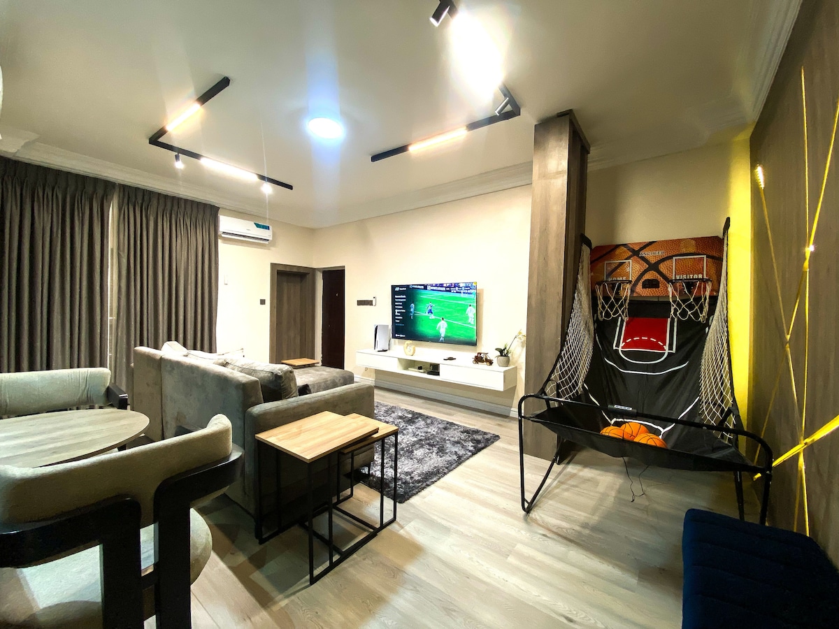 Enjoy 24/7 power inverter, fast Wi-Fi, smart TV with Netflix, a full kitchen, washing machine, AC, Portable fan, and water heater. Jahi 1BR Luxury Service Apartment is a modern 1-bedroom serviced apartment in Jahi Ahmed Gambo Saleh Cres, Abuja, 900108, Federal Capital Territory, NG, Abuja. Perfect for families, couples, tourists, business travelers, and digital nomads. Features snooker, virtual reality, and games. Jabi Abuja No. 1 King Emperor Street, black onyx Jahi by Gilmor