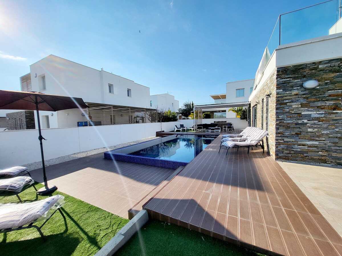 कोकून व्हिला हा त्याच्या समकालीन डिझाइनसह आणि तपशीलांकडे लक्ष देऊन निसर्गाचा आणि वैशिष्ट्याचा उत्सव आहे. एक जास्त आकाराचे किचन, तीन बेडरूम्स आणि तीन बाथरूम्स आणि भूमध्य समुद्राचे अमर्यादित व्हिस्टा असलेले. प्रसिद्ध कोरल बेमध्ये स्थित, बीचपासून फक्त 3 मिनिटांच्या अंतरावर आणि सर्वोत्तम शॉपिंग, रेस्टॉरंट्स आणि बार्सपासून 5 मिनिटांच्या अंतरावर. कथेचे क्रिसेंडो हे पूर्णपणे खाजगी आऊटडोअर करमणूक पूल क्षेत्र आहे, जे लक्झरी सन - बेड्स आणि पूर्णपणे सुसज्ज बार्बेक्यू/बारसह पूर्ण आहे.