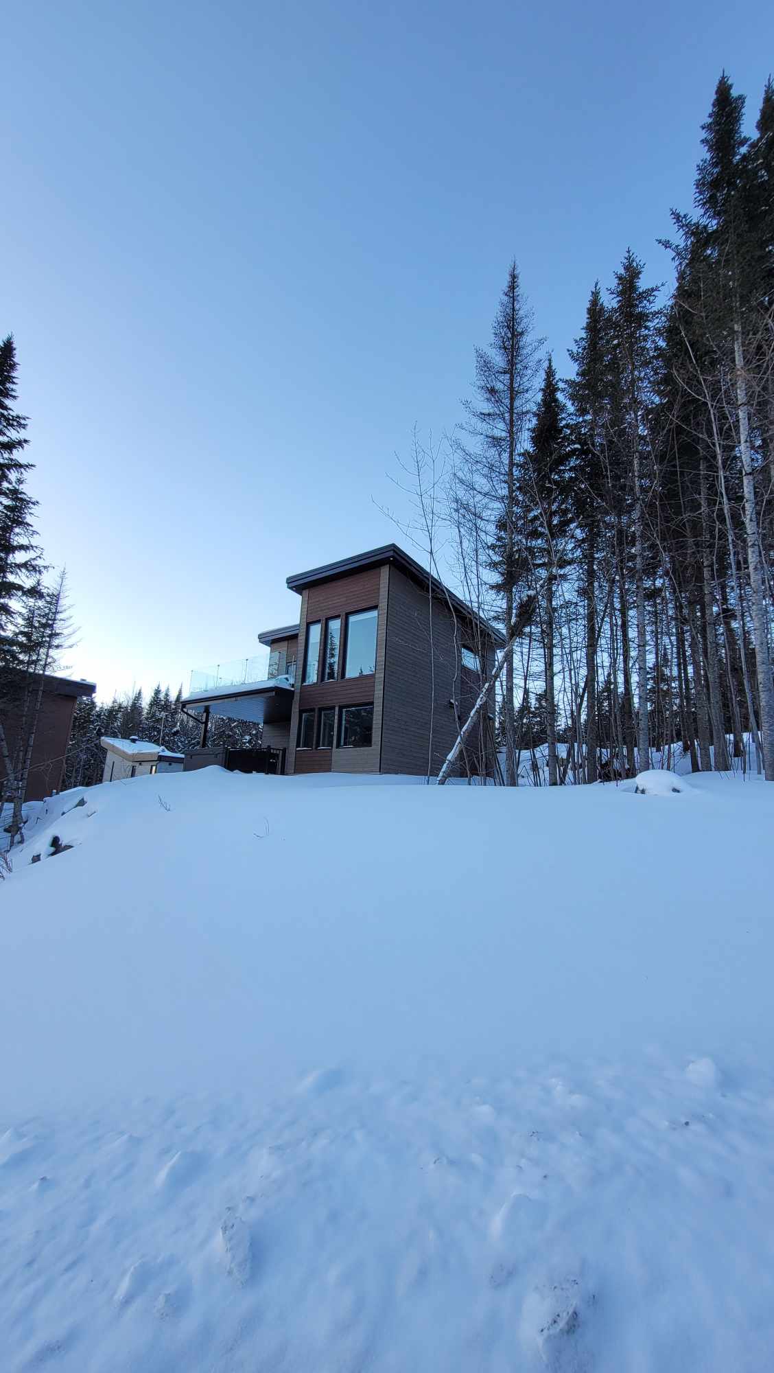 CITQ 296419 स्वर्गाचा छोटासा तुकडा, पूर्व टाऊनशिप्समधील लेक थोरच्या किनाऱ्यावर असलेल्या जंगलात आहे. त्याच्या अनोख्या बांधकामासह, हे भव्य गंधसरुचे लाकूड शॅले, रूमवरील रूम त्याच्या शांततेमुळे आणि निसर्गाच्या निकटतेमुळे पर्यटकांचे दृश्य बदलण्यासाठी तयार आहे …उन्हाळ्यात सर्व काही असते! स्पा, इलेक्ट्रिक मोटर बोट, फायरवुड! हिवाळ्यात, प्रवेशद्वार बर्फापासून मुक्त केले जात नाही, 100 मीटर स्नोशूईंग आवश्यक आहे आणि हिवाळ्यातही स्पा नेहमीच उपलब्ध असतो. सुंदर जागा!