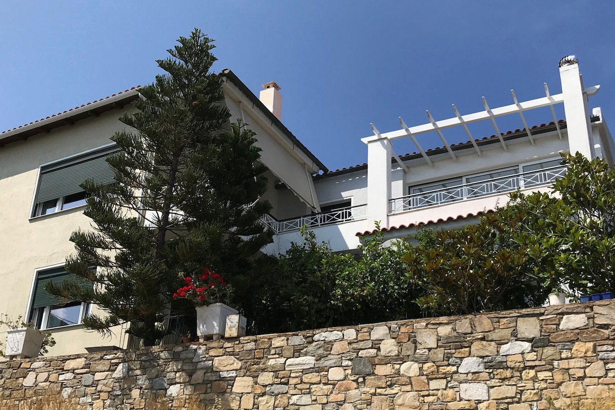 एजिओस किरिकोस शहराची राजधानीपासून पाच मिनिटांच्या अंतरावर असलेले हे घर नव्याने बांधलेल्या मरीना, पोर्ट आणि सिटीला अनियंत्रित दृश्ये देते. एका डोंगराच्या काठावर बांधलेले आणि त्याच्या खाजगी बागेने वेढलेले तुमचे प्रायव्हसी आणि शांती सुनिश्चित करते. हे विमानतळापासून 10 किमी अंतरावर आहे आणि थर्माच्या थर्मल स्प्रिंग्सपासून 10 मिनिटांच्या अंतरावर आहे. प्रिओनी नावाचा एक छान खाजगी बीच देखील आहे. हे घर एक हमी आहे की तुमची सुट्टी अधिक संस्मरणीय होईल.