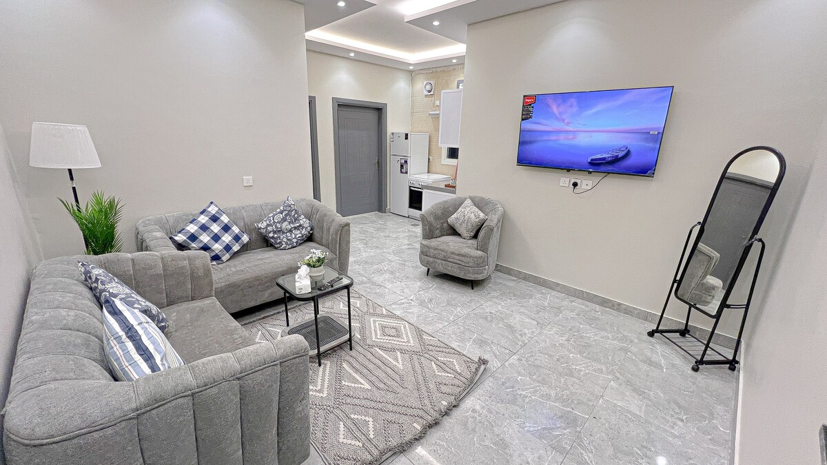 स्वागत आहे अपार्टमेंटमध्ये दोन आरामदायक बेडरूम्स आणि एक प्रशस्त लिव्हिंग रूम आहे, अपार्टमेंट आरामदायी वास्तव्याची हमी देणाऱ्या सर्व मूलभूत गरजांनी सुसज्ज आहे आणि कुटुंबाच्या आरामासाठी आणि ॲक्टिव्हिटीजसाठी मोठी जागा आहे लोकेशन शांत आणि सुरक्षित आहे, मध्यवर्ती आहे आणि मूलभूत सेवा आणि सुविधांच्या जवळ आहे, ज्यामुळे आराम आणि स्वातंत्र्य मिळवू इच्छिणाऱ्या कुटुंबांसाठी किंवा प्रवाशांसाठी हा एक आदर्श पर्याय आहे टेरा मॉलजवळ ( 5 मिनिटे ) ज्युरी मॉलजवळ ( 5 मिनिटे ) अल रुखाफ पार्कजवळ ( 10 मिनिटे )