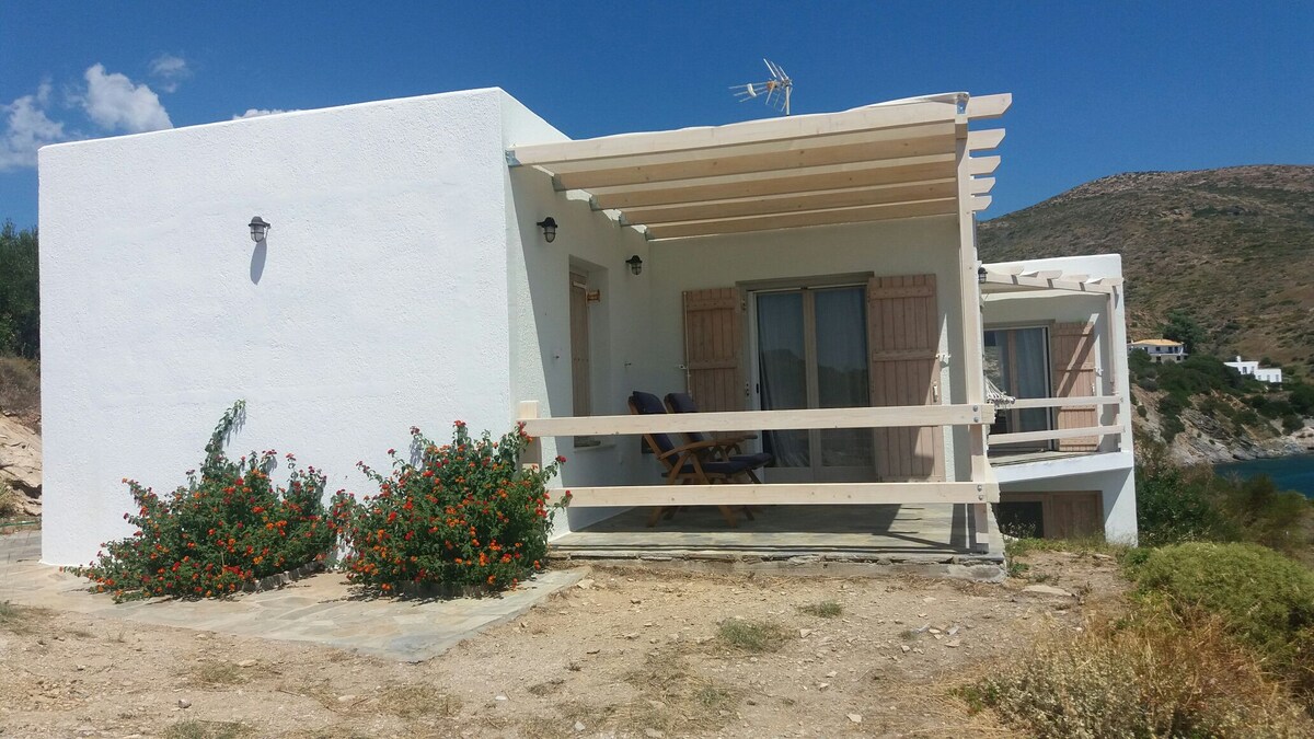 Cycladic style deluxe house of 40m2, fully equipped with breathtaking sea view is located in Paximada (10 klm distance from Karistos, main town). In 500m there are sandy isolated beaches and in 3 klm there is one of the most beautiful organized beach of South Evia, "Agia Paraskevi". The house is built in an autonomous yard of 650m and has a shaded sitting veranda of 25m2 where you can rest, and enjoy endless blue . The place is also called OSMAES.