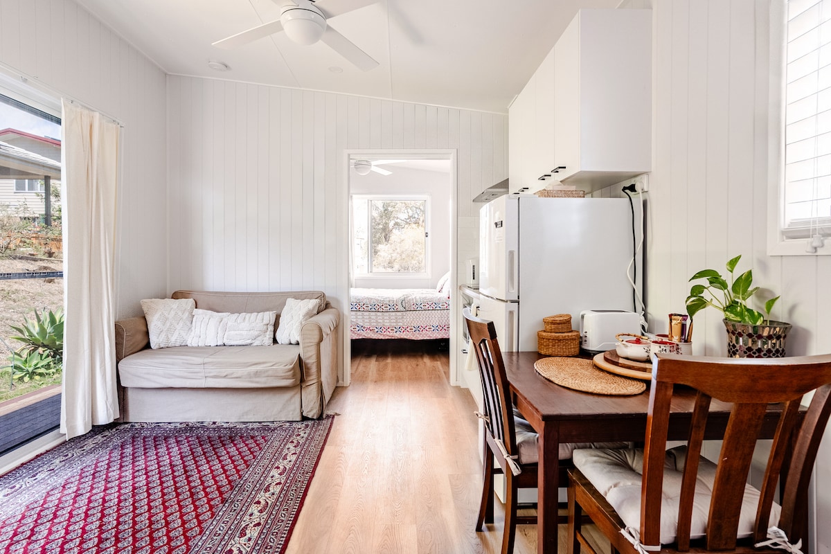 Kick back and relax in this calm, stylish studio located in one of the quiet, leafy streets of Everton Hills just under 10km from Brisbane CBD. This renovated studio apartment is the ground floor of a 70s built free-standing house. We live upstairs, and movement noise is to be expected. You will have your own separate/private entry from the back of the house. The unit has everything you need, which includes a comfy queen bed, a study desk, and a functional kitchen with a washing machine.