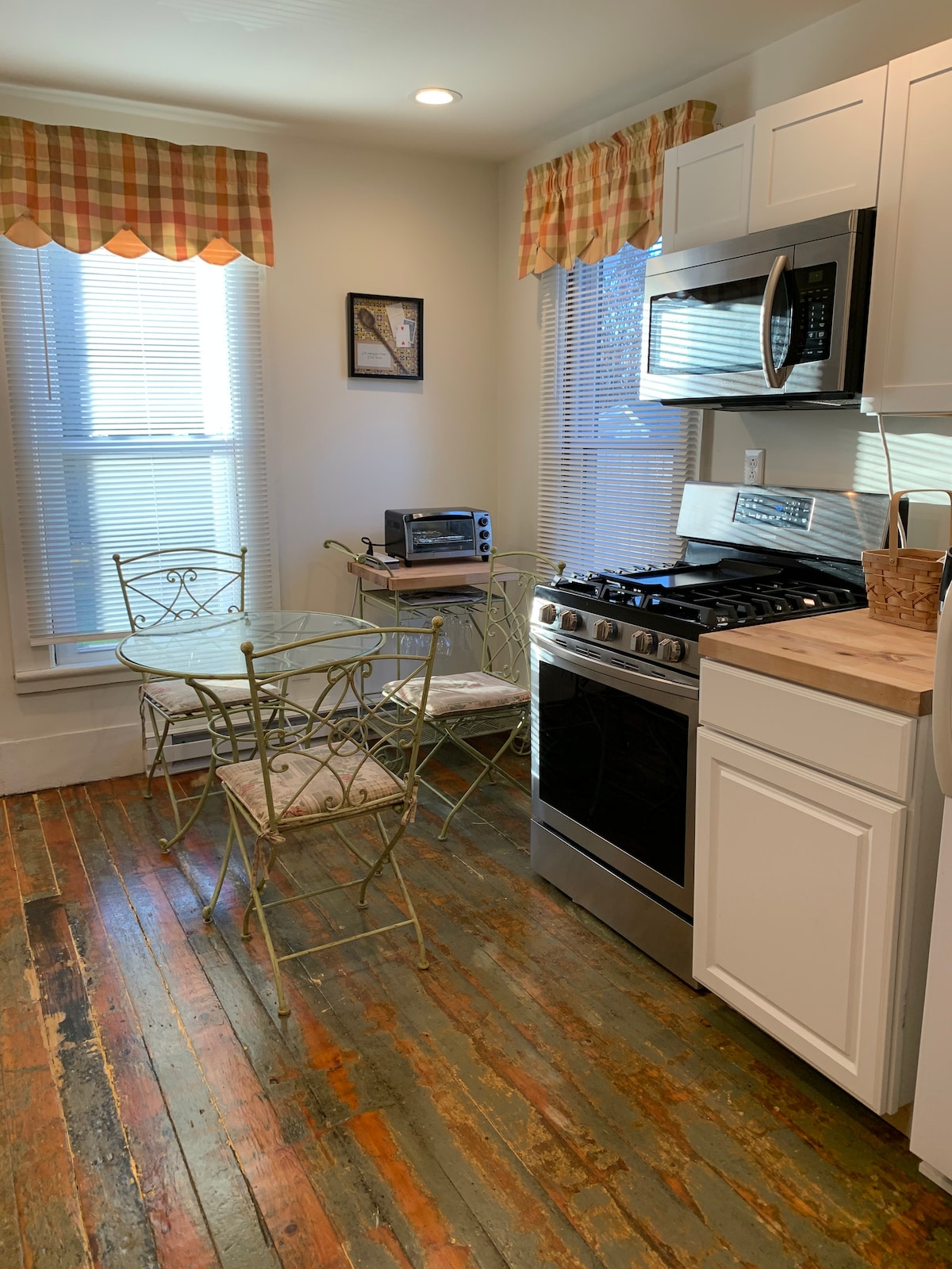 आमच्या मोहक, जुन्या (परंतु नुकत्याच नूतनीकरण केलेल्या!) मध्ये तुमचे स्वागत आहे ऑर्चर्ड पार्क व्हिलेज फार्महाऊस! मोठ्या, पण उबदार, राहण्याच्या आणि जेवणाच्या जागा आणि सर्व सुविधांसह एक विशाल किचन. आमच्याकडे 2 मोठ्या बेडरूम्स आहेत, प्रत्येकामध्ये बाथरूम आणि वॉक - इन क्लॉसेट्ससह "मास्टर सुईट" आहे. एका बेडरूममध्ये, आवश्यक असल्यास, किंग बेड 2 जुळ्या मुलांमध्ये रूपांतरित केला जाऊ शकतो. लिव्हिंग रूममध्ये क्वीन स्लीपर सोफा. आम्ही सर्व गावातील दुकाने, रेस्टॉरंट्स आणि कॉफी शॉप्सपर्यंत थोडेसे 1/4 मैलांच्या अंतरावर आहोत. 2 ऑफ - स्ट्रीट पार्किंग जागा, वायफाय, एसी आणि लाँड्री.