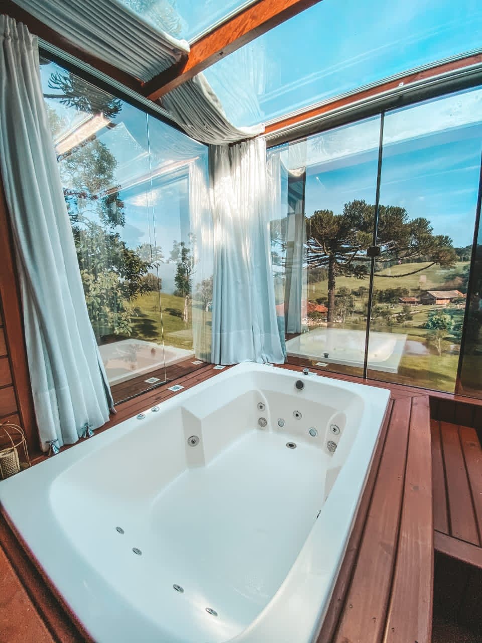 शॅले रोमान्टिको ना सेरा, या शांत आणि स्टाईलिश जागेत आराम करू इच्छिणाऱ्या आणि विशेष क्षणांचा आनंद घेऊ इच्छिणाऱ्या जोडप्यांसाठी आदर्श. शॅलेस क्रिस्टल ही निसर्गाच्या मध्यभागी असलेली एक शांत जागा आहे. यात आंघोळीच्या खारटांसह एक सोकिंग टब आहे, ज्यात क्षितिजाचे आणि ताऱ्यांचे संपूर्ण दृश्य आहे; 600 - थ्रेड - काऊंट शीट्ससह क्वीन - साईझ बेड; गॅस शॉवर आणि काचेची छत; एक पूर्ण किचन; आत आणि बाहेर एक फायरप्लेस आणि एक वातानुकूलित सेलर! आम्ही दैनंदिन दरात समाविष्ट असलेल्या बास्केटमध्ये नाश्ता करतो!