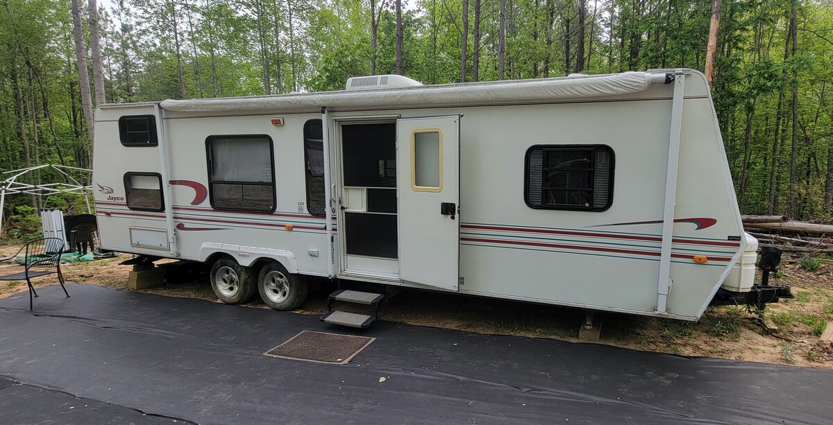 डेब्रेक ग्लॅम्प आणि कॅम्पमध्ये तुम्ही आमचे सनलाईन कॅम्पर बुक करू शकता आणि तुमचे ग्लॅम्पिंग अॅडव्हेंचर सुरू करू शकता! हे युनिट एक RV क्वीन बेड, एक सोफा सोफा आणि ड्रॉप डाऊन डिनेट स्लीप एरियासह 4 लोकांपर्यंत आरामात झोपते. हे युनिट एक खाजगी बाथरूम आणि गॅस ओव्हन आणि स्टोव्ह, मायक्रोवेव्ह आणि फ्रीजसह एक लहान किचन क्षेत्र ऑफर करते. यात A/C, हीट, फ्री लिनन आणि टॉवेल्स आहेत. वैयक्तिक प्रवाशांसाठी किंवा कुटुंबासाठी योग्य. हे नॉन - स्मोकिंग युनिट आहे. पाळीव प्राण्यांना परवानगी आहे, परंतु केवळ खाजगी बुकिंग्जसाठी.