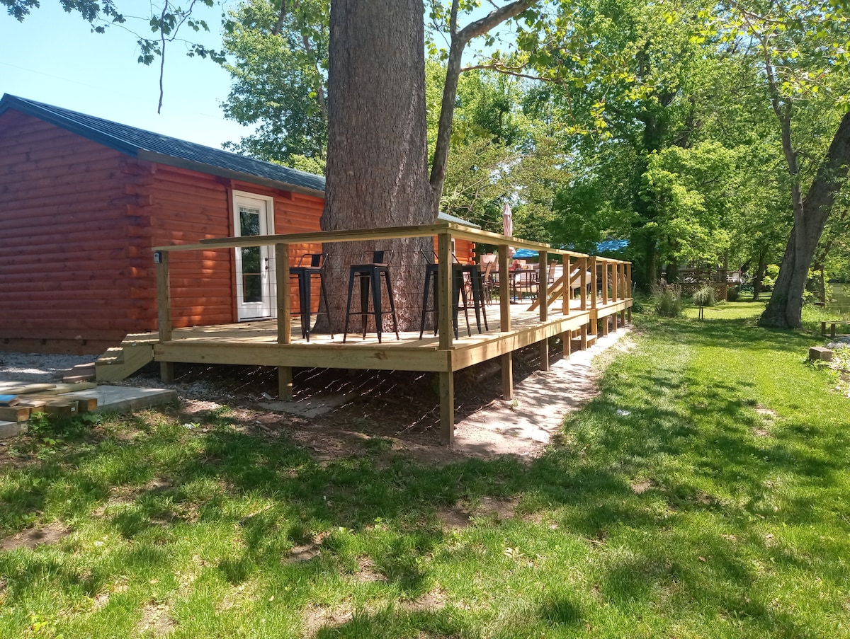 Welcome to your peaceful lakeside getaway! This renovated boho-style cottage offers a quiet and laidback retreat. Featuring an open loft layout, a covered porch, and a large deck overlooking two small serene lakes, this home is designed for relaxation. Enjoy evenings under the Pergola with swings or gather around the hillside firepit for unforgettable nights. Its location also makes it easy for you to get around. You're just: 10 min to I-70 hwy 20 mins to the airport 30 mins to Indy Downtown