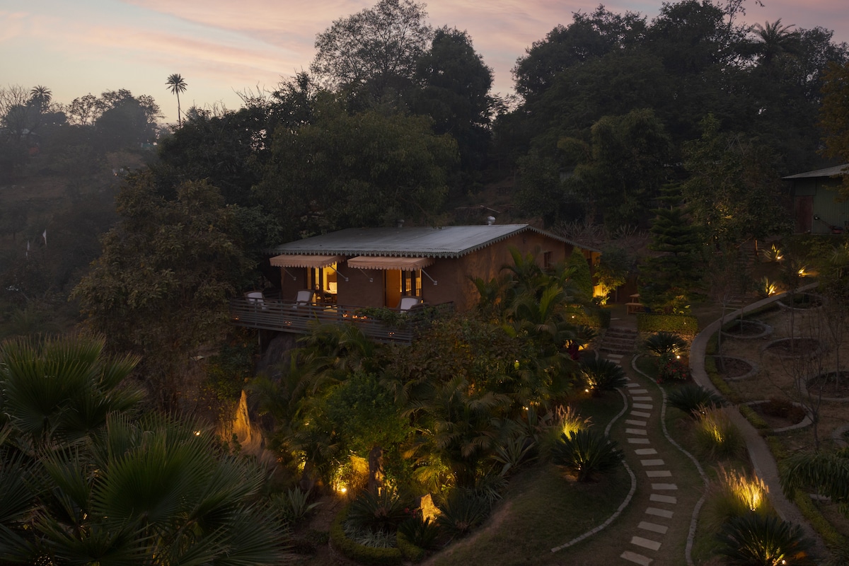 जिथे निसर्ग आणि आराम एकत्र येतात अशा शांत जागेत पलायन करा. 4.4 एकर ऑरगॅनिक फार्मलँड आणि सुंदर गार्डन्सवर सेट केलेले हे इको - फ्रेंडली रिट्रीट अडाणी मोहक आणि आधुनिक सुविधांचे मिश्रण देते. ताजे फार्म - टू - टेबल जेवण, वन्यजीव सफारी, स्टारगेझिंग आणि ग्रीन मुनिया सारख्या दुर्मिळ पक्ष्यांचा आनंद घ्या. अप्रतिम हिलटॉप व्ह्यूजसह, आराम करण्यासाठी, रिचार्ज करण्यासाठी आणि निसर्गाशी कनेक्ट होण्यासाठी ही योग्य जागा आहे.