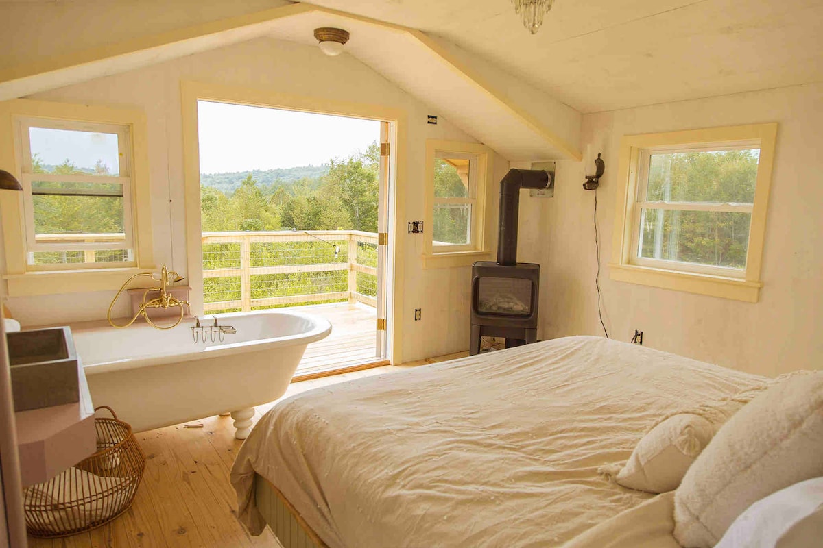 खाजगी सॉना आणि एक अप्रतिम नवीन हॉट टब असलेले सुंदर आणि अगदी नवीन रिव्हरबेड ट्रीहाऊस! दिवसभर लांब आणि जंगली अप्रतिम सूर्यास्त पाहते!! स्ट्रॅटन माऊंटन तुमच्या बोटांच्या अगदी जवळ आहे आणि वसंत ऋतूमध्ये एक त्रासदायक झुडूप नदी बनली आहे! एक्सप्लोर करण्यासाठी जंगले आणि ट्रेल्स. मॅजिक एमएनटीच्या स्की ट्रेल्सच्या बाहेर अप्रतिम रिज लाईन!! झटपट शॉपिंग आणि कॉफी शॉप्ससाठी शहराच्या जवळ! एक्सकंट्री स्की किंवा स्नोशू किंवा आमचे सुसज्ज ट्रेल्स चालवा!! जलद वायफाय, निसर्ग प्रेमी आणि पक्षी निरीक्षक नंदनवन !!@bentapplefarm
