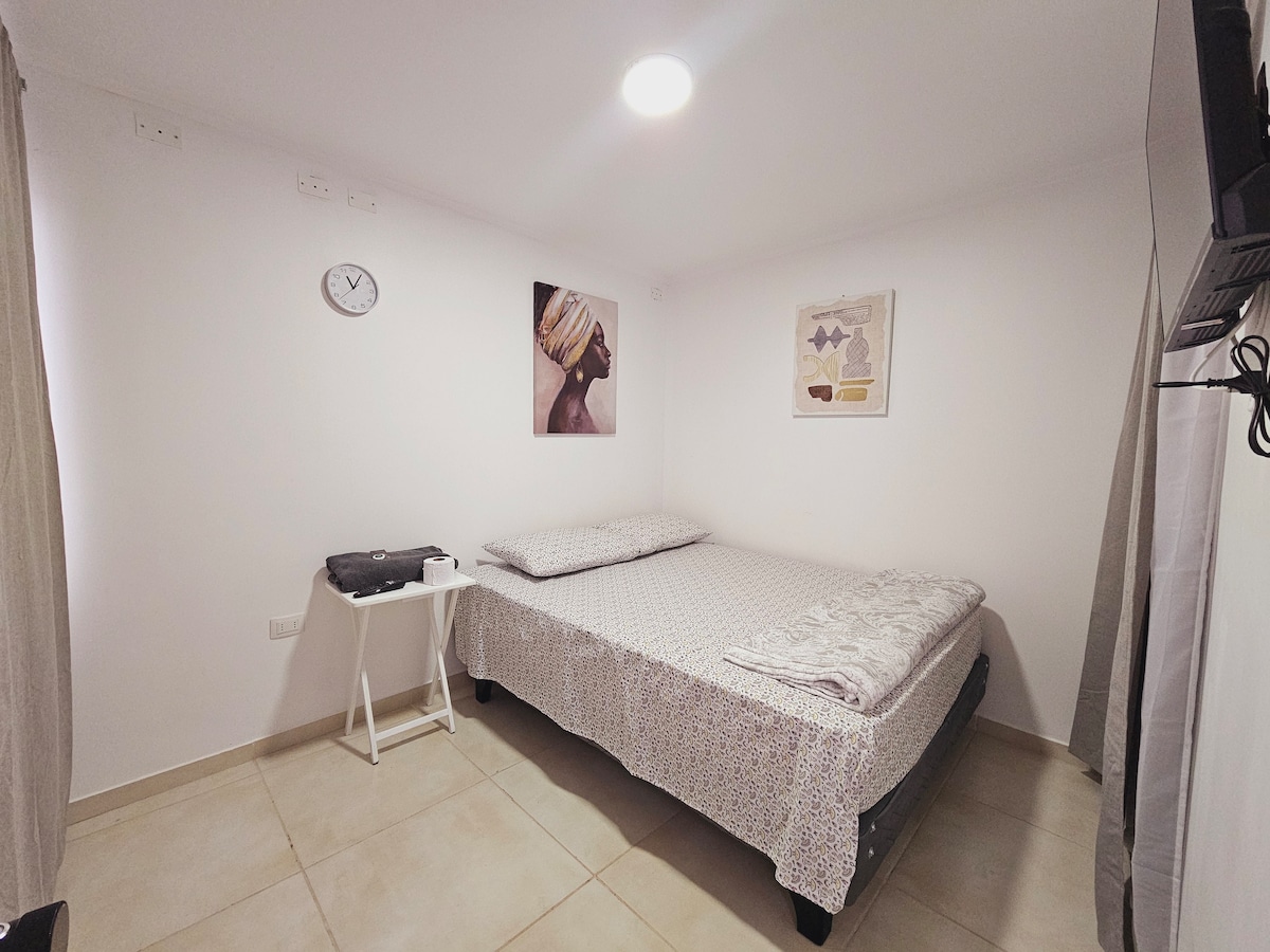 Esta habitacion esta diseñada para el descanso y comodidad a plenitud, cuenta con Cama de plaza y media , Smart TV y Netflix para su completa comodidad, cuenta ademas con lavandería, una amplia terraza compartida y baño . El ingreso a la habitación es 100% independiente con código de seguridad. Disfrutarás de un ambiente tranquilo
