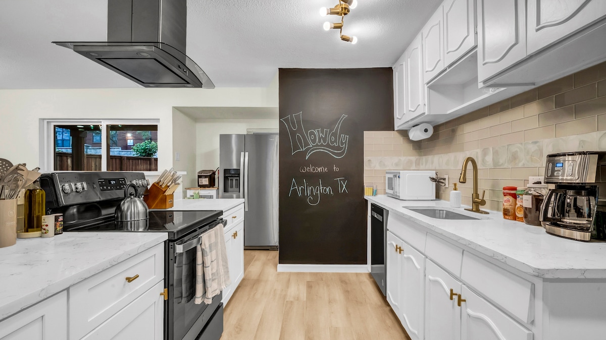 डॅलस आणि फोर्ट वर्थ दरम्यान, मिड - सिटीजच्या मध्यभागी असलेल्या अर्लिंग्टन, टेक्सासमध्ये असलेल्या क्युल्डेसाकवर सुसज्ज 3 - बेडरूम, 2 - बाथ घर, तुमच्या बॅकयार्डच्या स्वप्नात तुमचे स्वागत आहे! तुम्ही कामासाठी, करमणुकीसाठी किंवा दीर्घकालीन वास्तव्यासाठी शहरात असलात तरी, हे घर आराम, सुविधा आणि टॉप मालक, आकर्षणे आणि वैद्यकीय केंद्रांचा ॲक्सेस यांचे परिपूर्ण मिश्रण ऑफर करते. तुम्ही आमच्या नेस्प्रेसो मशीनमधून ताज्या एस्प्रेसोच्या लक्झरी कपसह तुमच्या दिवसाची सुरुवात करण्यासाठी तयार आहात का?:)