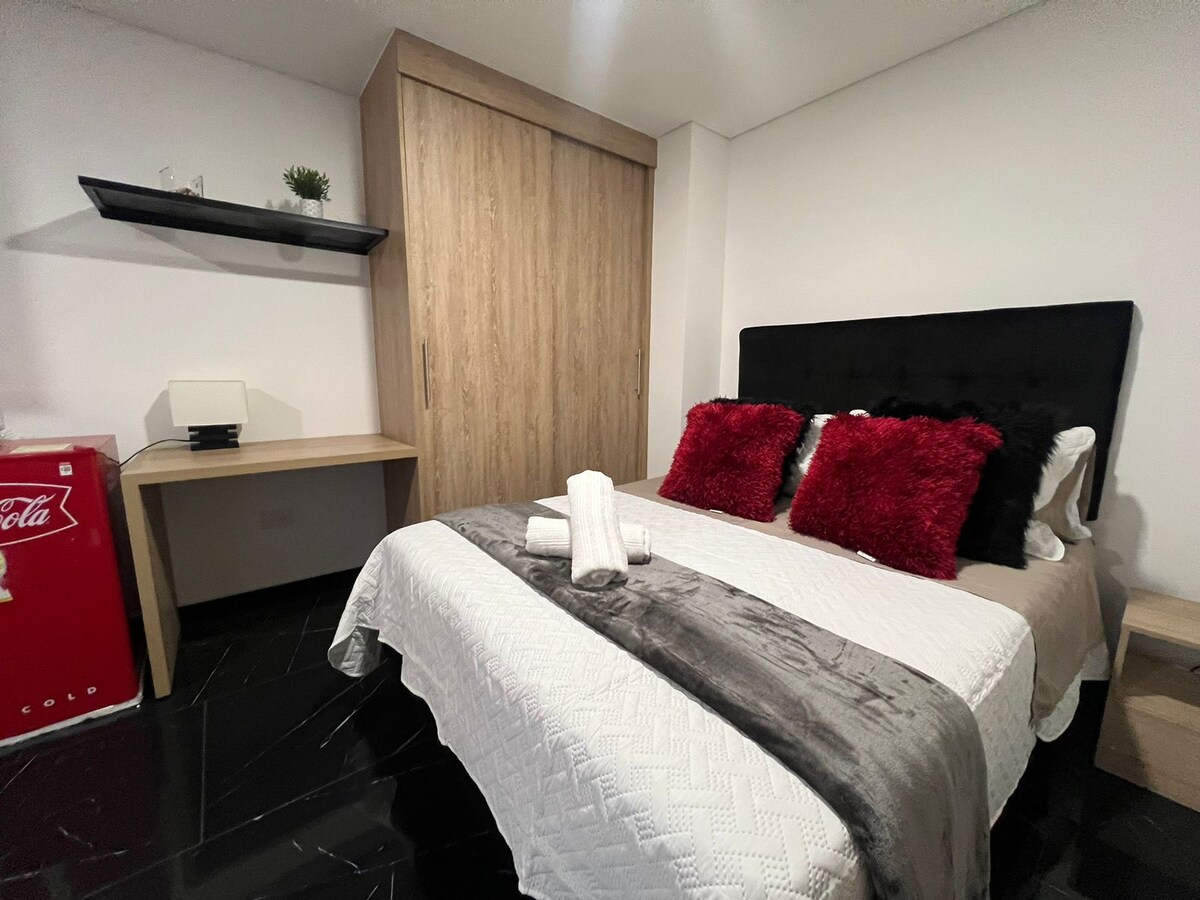 या अनोख्या आणि शांत जागेत आरामात रहा. तुम्ही आहात आणि ला टेबायडा या अद्भुत शहरात असलेले एक नवीन अपार्टमेंट, अँडीज पर्वतांनी वेढलेले क्विंडियो, ला तेबायडा उबदार हवामान आणि वैविध्यपूर्ण गॅस्ट्रोनॉमीसाठी प्रसिद्ध आहे, तुम्हाला असे डिशेस सापडतील ज्यांची तुम्ही कधीही कल्पना केली नसेल जसे की भरलेल्या जीभासारखे कुठेही खाणे. परंतु या काँडोमिनियमच्या प्रेमात पडल्याने तुम्हाला आजूबाजूला आणि त्यांच्या दयाळूपणाबद्दल प्रेम मिळेल, कारण आम्हाला आमच्या देशाचा अभिमान आहे