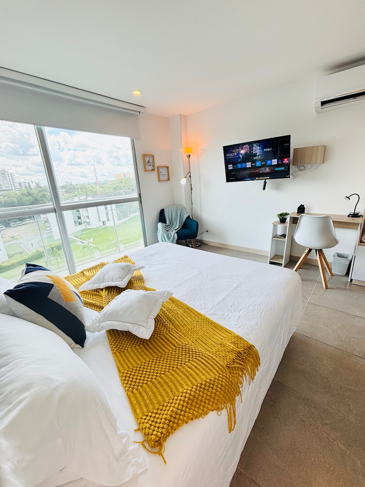 ** अर्मेनियामधील मोहक अपार्टमेंटस्टुडिओ** चौथ्या मजल्यावर असलेल्या माऊंटन रेंजकडे पाहत असलेल्या आमच्या अपार्टमेंट - स्टुडिओमध्ये अविस्मरणीय वास्तव्याचा आनंद घ्या. अर्मेनियाच्या उत्कृष्ट भागात स्थित, तुम्ही उद्याने, शॉपिंग सेंटर, क्लिनिक, रेस्टॉरंट्स आणि इतर बऱ्याच गोष्टींच्या जवळ असाल. सार्वजनिक वाहतुकीच्या सुलभ ॲक्सेससह, तुम्ही सर्कसिया, सालेंटो आणि फिलांडिया सारख्या पर्यटन स्थळांपर्यंत पोहोचू शकता. या बिल्डिंगमध्ये पूल, जकूझी, सॉना, बिलियर्ड्स आणि सामाजिक जागा आहेत. तुमच्या Eje कॅफेटेरो ॲडव्हेंचरसाठी योग्य!