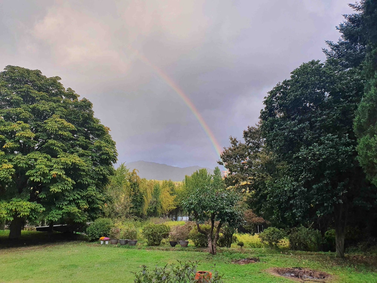 मॅन्शन ॲप्लेट्रीचे नवीन पेंशन सफरचंद ट्री आहे. मूलभूत 2 लोक (2 अतिरिक्त मुले शक्य आहेत. जास्तीत जास्त 4 लोक शक्य आहेत) ते सफरचंदाच्या सूपच्या मध्यभागी असल्याने, आम्ही वसंत ऋतूमध्ये सफरचंदांच्या फुलांकडे पाहतो आणि आम्हाला उन्हाळ्यात वाढणारी सफरचंदे आणि शरद ऋतूमध्ये कापणीचा आनंद देखील शेअर करायचा आहे. शरद ऋतूतील कापणीच्या हंगामात, सफरचंद पिकिंगचे अनुभव केवळ गेस्ट्ससाठी उपलब्ध असतात. (ऑगस्टच्या मध्यापासून ऑक्टोबरच्या शेवटापर्यंत) ब्रेकफास्ट सकाळी 9 वाजता दिला जातो. मी ते तुमच्या निवासस्थानी आणेन! हे घरापासून 3 मिनिटांच्या अंतरावर आहे आणि ते आशियातील सर्वात मोठे राष्ट्रीय बेकडेगन आर्बोरेटमचे घर आहे, जेणेकरून तुम्ही चार - सीझनच्या आर्बोरेटमचे सौंदर्य अनुभवू शकाल. तुम्ही बेकडसांगन वाघाला वैयक्तिकरित्या देखील भेटू शकता. बक्षिस पैसे आणि उगुचिरी सारखी एक स्पष्ट व्हॅली आहे जी 10 मिनिटांच्या ड्राईव्हमध्ये आहे. पाण्यासाठी थंड व्हॅलीमध्ये खेळा. मला आशा आहे की तुम्ही ग्रामीण इतिहास आणि मिठाईमध्ये तुमच्या जीवनाचा आनंद घ्याल. Insta @ the_apple_tree_