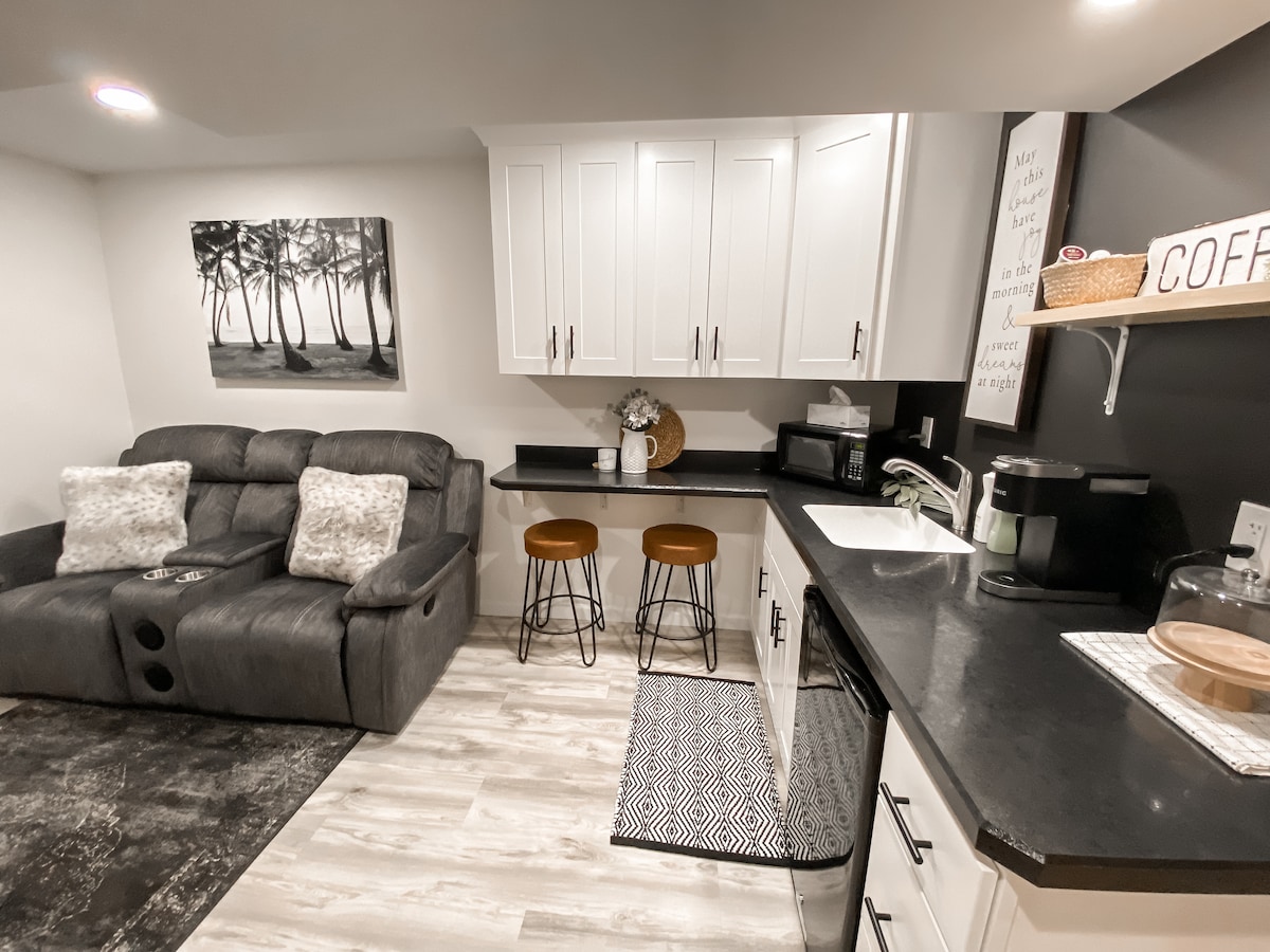 आराम करा आणि किंग बेडसह या उबदार, नव्याने नूतनीकरण केलेल्या अपार्टमेंटचा आनंद घ्या, तुमच्या अकाऊंट्समध्ये लॉग इन करण्यासाठी उबदार लिव्हिंग रूम, डायनिंग एरिया, स्वयंपाकघरातील सर्व आवश्यक गोष्टी, पूर्ण आंघोळ, काम करत असताना प्रवास करणाऱ्या गेस्ट्ससाठी वर्कस्पेस, युनिट वॉशर आणि ड्रायरमध्ये. गेस्ट्स बॅकयार्ड/ वूड्स व्ह्यू आणि फायर पिट एरियासह डेकचा आनंद घेऊ शकतात. डेव्ह येताना आणि जाताना तुम्ही डेव्हला (जो शेजारी राहतो) पाहू/भेटू शकता, तो एक चांगला शेजारी आहे आणि गेस्ट्सच्या गोपनीयतेचा आदर करेल.