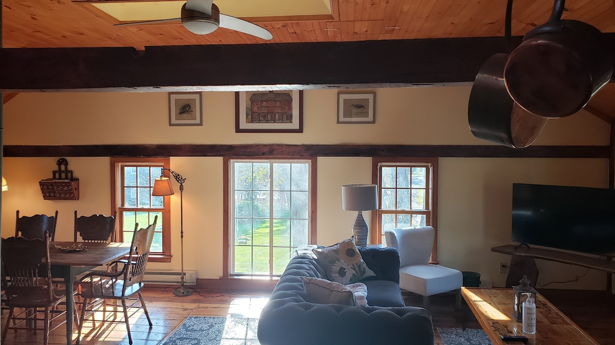 ऐतिहासिक 1600 च्या डच बूवरिज (फार्म) च्या मैदानावर कॅरेज हाऊस अपार्टमेंट, तरीही सर्व आधुनिक सुविधांसह. आमच्या हडसन रिव्हर साईड अपार्टमेंटमध्ये मूळ एक्सपोज केलेल्या बीम्स, लाकडी फरशी, स्वादिष्ट सजावट आणि संपूर्ण देशाचे किचन आहे. बीचच्या ॲक्सेससह ऑन - हडसन नदीच्या काठाच्या सेटिंगमुळे गरुड आणि हरिण किंवा कयाकिंग पाहण्याची परवानगी मिळते. मार्शलँड वन्यजीव आश्रयापर्यंत चालत जा. प्रॉपर्टीवर 19 व्या शतकातील लाईटहाऊस. शरद ऋतूमध्ये पाने झटकून टाकणे किंवा सफरचंद पिकवणे. जवळपास हंटर आणि विंडहॅम स्की एरियाज.