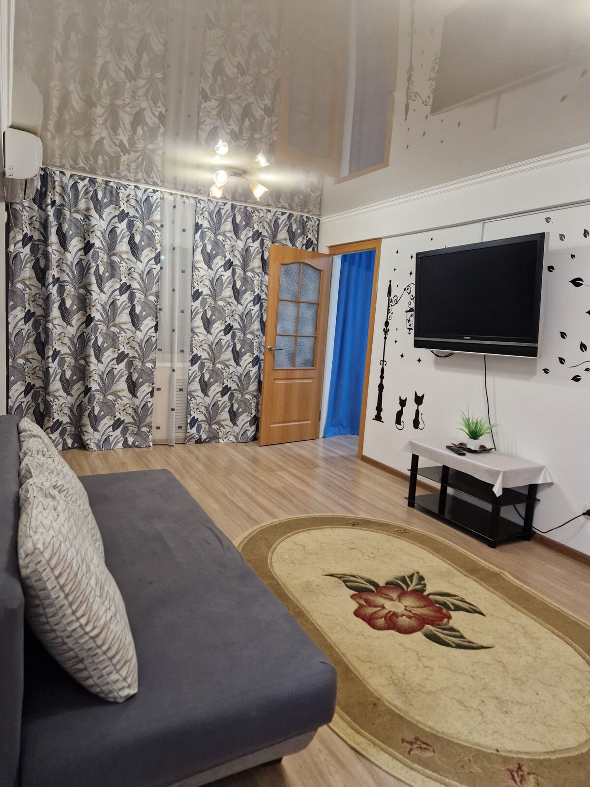 Уютная 3х ком квартира в спальном районе, в шаговой доступности огромный торговый центр,банк, остановка и супермаркет.В квартире есть всё необходимое для проживания, интернет.