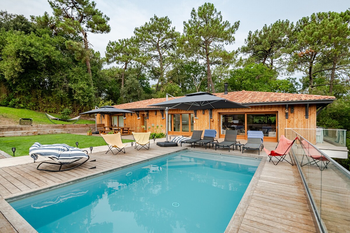 2023 मध्ये कुटुंबांसाठी किंवा ग्रुप्सच्या ग्रुप्ससाठी आमच्या नूतनीकरण केलेल्या घराचा आनंद घ्या, जे तुम्हाला दृष्टीकोनातून चांगला वेळ देईल. सुमारे 150m2 चे घर 8 प्रौढ आणि 1 मुलासाठी इष्टतम कॉन्फिगरेशन ऑफर करते, ज्यामध्ये 8 मिलियन x 4 मिलियन स्विमिंग पूल आहे ज्यात गरम न केलेल्या अलार्म सिस्टमने सुसज्ज पायऱ्या आहेत. 100 मीटरचे मोठे लाकडी टेरेस आणि गार्डन फर्निचरसह एक निवारा टेरेस. बाईक मार्गाजवळ, लॅन्टनचे बीच आणि त्याची दुकाने जवळच आहेत.
