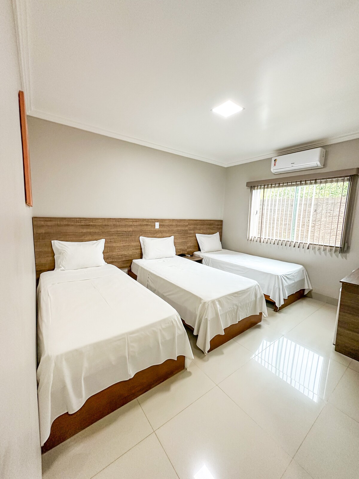 Estadia corporativa com 2 camas de solteiro. Ambiente ideal para executivos em dupla ou viajantes individuais que priorizam conforto. Ar condicionado 2 camas de solteiro Wi-Fi TV Estação de trabalho Estacionamento gratuito Lavanderia expressa disponível - Café da manhã | Seg a Sex - 6h30 às 10h30 | Sab e Dom das 7h às 11h (incluso) - Almoço | Seg a Sex - 12h às 16h | Sáb e Dom 13h às 16h (opcional e no próprio hotel) - Jantar | Todos os dias - 18h às 00h (a cozinha fecha às 23h)