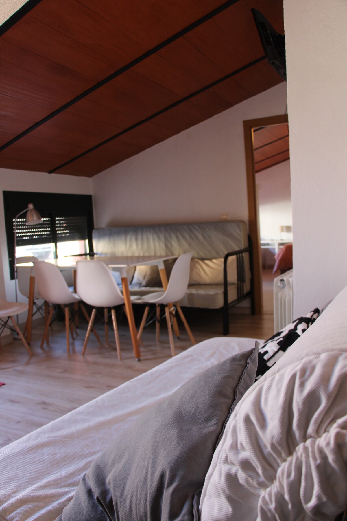 चार लोकांसाठी प्रशस्त रूम. त्याच्या 35 चौरस मीटरमध्ये आपल्याला दोन सिंगल बेड्स, एक डबल बेड, सुसज्ज किचन आणि खाजगी बाथरूम आढळतील. तापमान नियंत्रित करण्यासाठी गरम आणि थंड एअर कंडिशनिंग आहे. विनामूल्य इंटरनेटसह फ्लॅट टीव्हीवर तुमच्या आवडत्या कंटेंटचा आनंद घ्या.