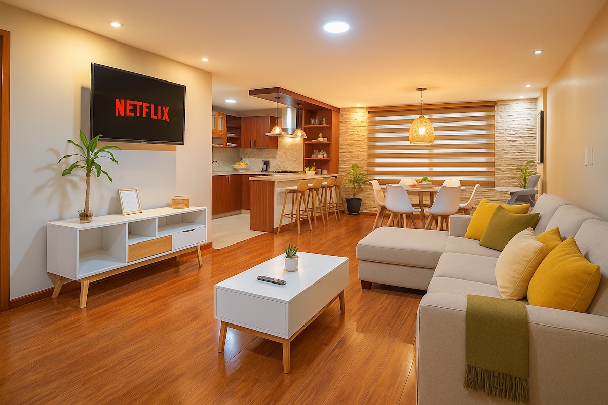 Located just a few steps from Parque Calderón, this spacious 2-bedroom apartment with a sofa bed offers you a unique experience in the heart of Cuenca. With modern amenities designed for your comfort, you will enjoy a warm and welcoming atmosphere. Surrounded by history, art, and the hospitality of our people, you'll be close to cathedrals, museums, and lively squares. Explore the local cuisine and charming streets.