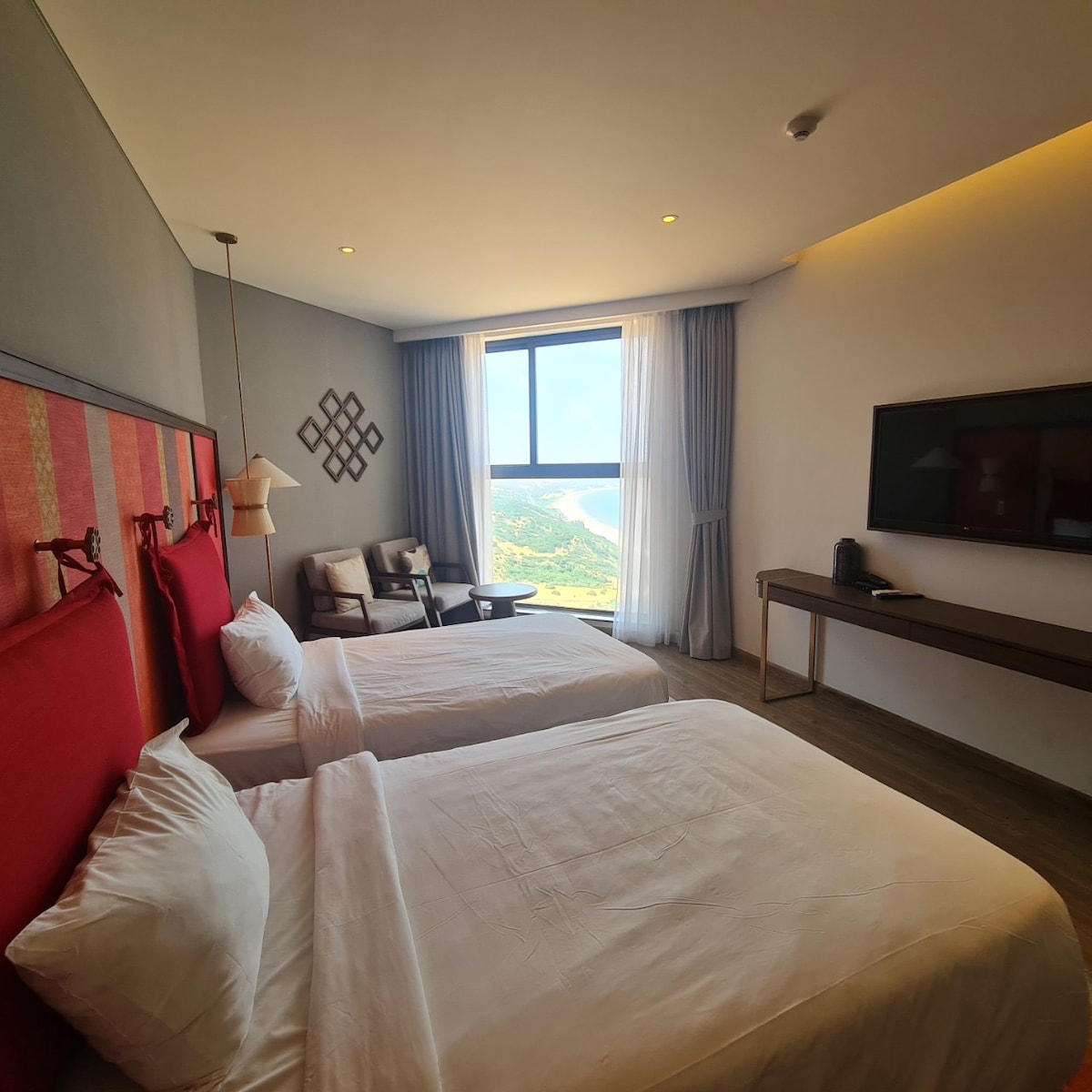 अपेक मंडाला माई ने येथे तुमचे स्वागत आहे, जिथे व्हिएतनामच्या सर्वात चित्तवेधक किनारपट्टीच्या डेस्टिनेशन्सपैकी एकामध्ये लक्झरी शांततेची पूर्तता करते. प्रत्येक रूम सभोवतालच्या निसर्गाच्या सौंदर्याचा स्वीकार करताना अंतिम आराम देण्यासाठी विचारपूर्वक डिझाईन केली आहे. इंटिरियरमध्ये आधुनिक सौंदर्यशास्त्र आणि पारंपारिक व्हिएतनामी घटकांचे सुसंवादी मिश्रण आहे, ज्यामुळे एक उबदार पण लक्झरी वातावरण तयार होते. मजल्यापासून छतापर्यंतच्या खिडक्या नैसर्गिक प्रकाशाला जागा, टर्क्वॉइज समुद्राचे पॅनोरॅमिक व्ह्यूज आणि हिरव्यागार लँडस्केप्सना पूर येऊ देतात.