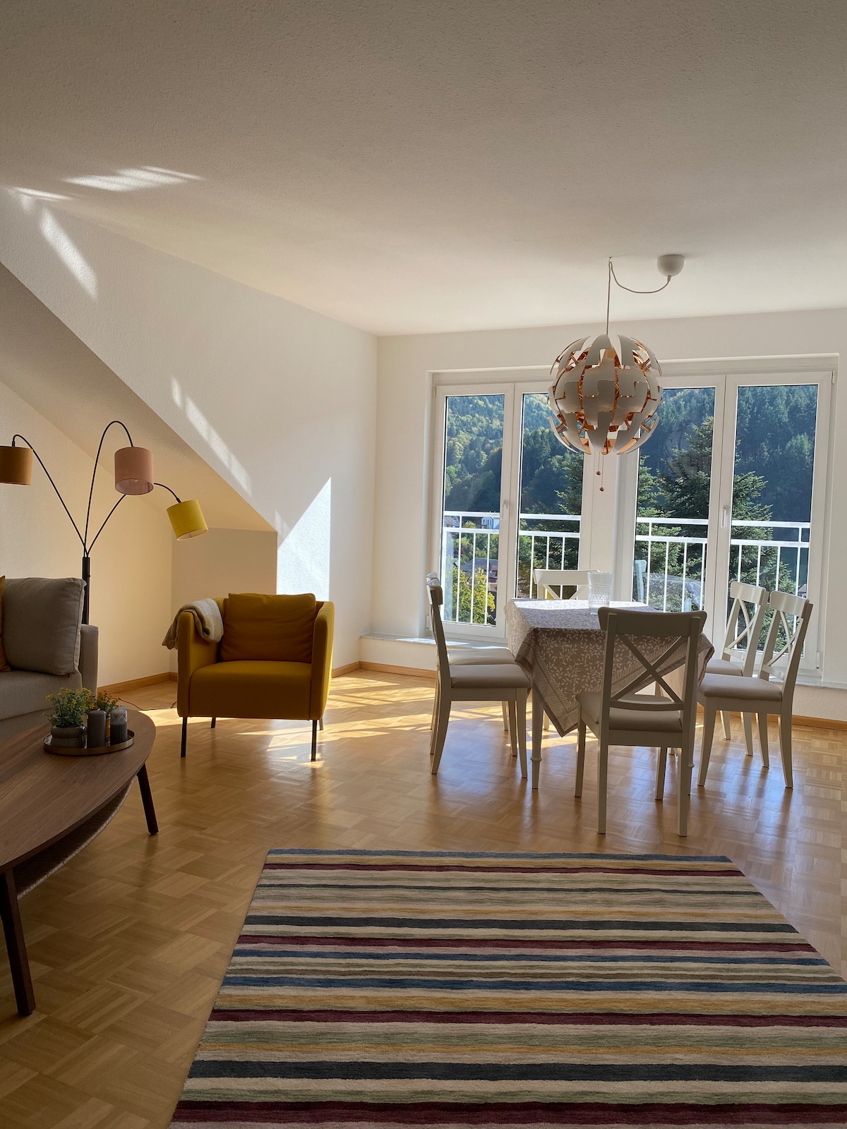दक्षिण ब्लॅक फॉरेस्टच्या सुंदर नैसर्गिक सेटिंगसह हवामानाच्या स्पा शहरामध्ये पॅनोरॅमिक दृश्यांसह अतिशय उज्ज्वल अपार्टमेंट. आरामदायक शांतता किंवा हायकिंग किंवा बाईक चालवण्यासाठी एक आदर्श जागा. मोठ्या उज्ज्वल लिव्हिंग - डायनिंग रूम आणि सोफा बेड आणि 2 बेडरूम्ससह पहिल्या मजल्यावर 95 चौरस मीटर अपार्टमेंट, पहिले डबल बेड असलेले आणि दुसरे 2 सिंगल बेड असलेले. डिशवॉशर आणि शॉवर आणि कोपरा बाथरूमसह मोठे तेजस्वी बाथरूमसह मोठे, पूर्णपणे सुसज्ज किचन. एक टेबल आणि पॅनोरॅमिक व्ह्यू असलेली बाल्कनी.