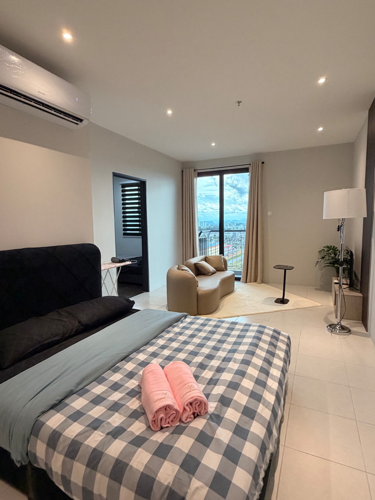 ✨ Welcome to our stylish homestay at a prime location—just 5 mins to Airport, KPJ & Saradise Food Paradise, and 8 mins to Vivacity! 🏙️ Featuring 3 comfy queen beds + 2 foldable mattresses, a 75” TV, cozy swing chair, and modern interior design. 🍳 Full kitchen facilities provided. Enjoy great facilities—big swimming pool, kids pool, gym, ping pong, and playground. Perfect stay for families or groups up to 8 pax! 🏡😊
