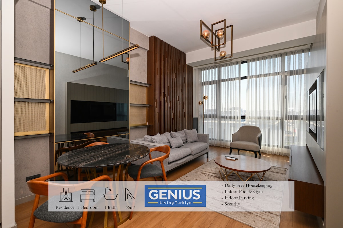 Welcome to this modern 1-bedroom apartment at, located in Güneşli / Basin Ekspres area. 🌿This stylish apartment offers spacious living with a fully equipped kitchen, access to wellness facilities including a pool, spa, sauna, and fitness center, and comes with daily free housekeeping service. Mimar Sinan Metro Station on the M9 line is just 100 meters from the apartment. We wish you a pleasant stay! ✨