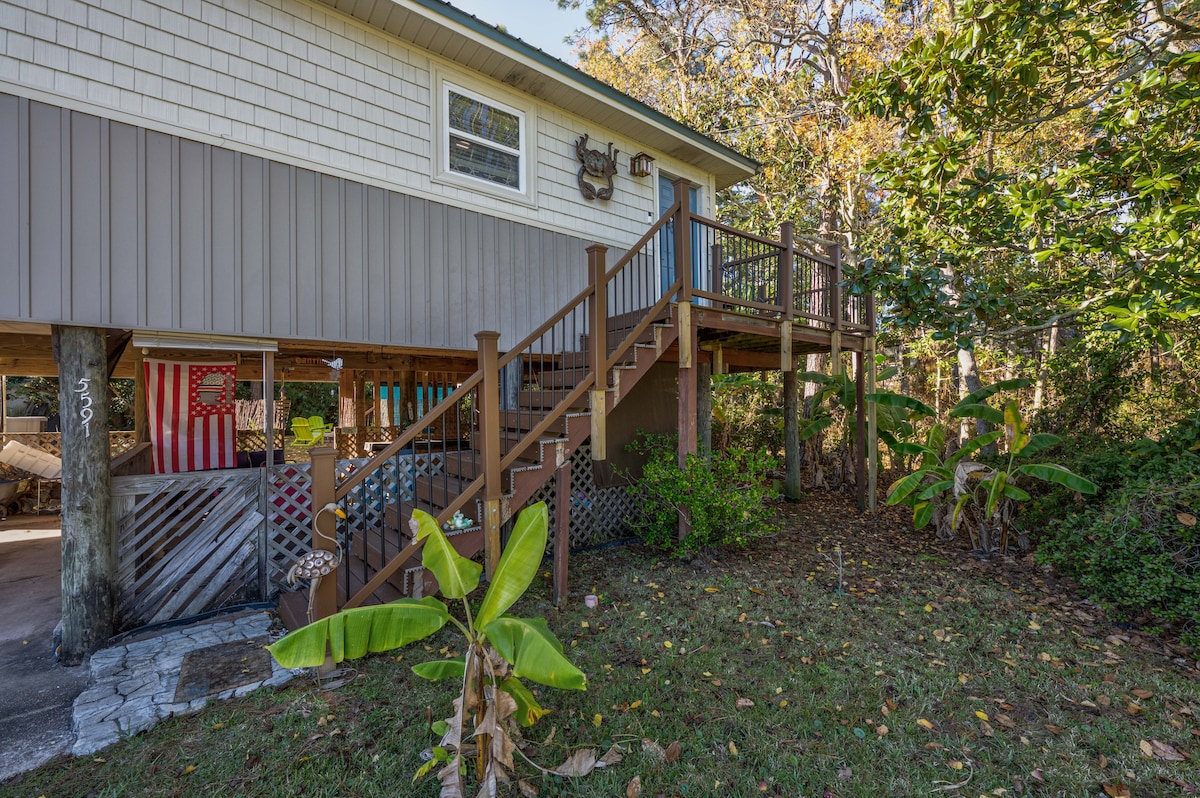 Enjoy the salt life at this comfortable cottage on Bon Secour Bay and near the idyllic bayside village of Fairhope. Enjoy sunsets on the pier or grill out on the waterfront deck. Tastefully appointed with local art, Casper beds and an attention to detail for a laid back visit. Set up for 4 adults. No children.