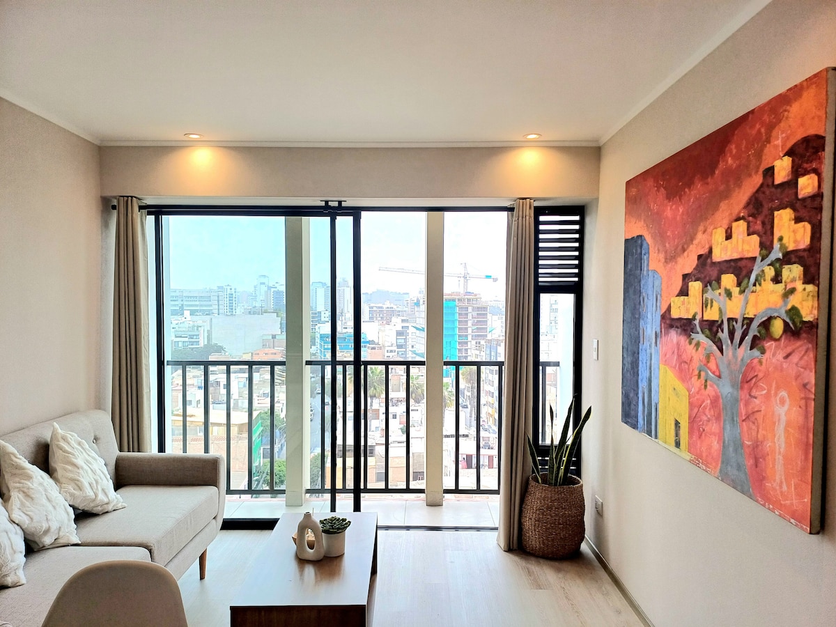बॅरान्को आणि मिराफ्लोरेसच्या सीमेवर पूर्णपणे स्थित अपार्टमेंट. यात खाजगी वॉशिंग मशीन, नेटफ्लिक्स, स्मार्ट टीव्ही, क्वीन बेड आणि लिव्हिंग रूम आणि किचन इंटिग्रेट करणारे सामाजिक क्षेत्र आहे. इमारतीच्या खाली तुम्हाला फार्मसी, रेस्टॉरंट आणि मिनिमार्केट सापडतील. याव्यतिरिक्त, तुम्ही सहजपणे पायी किंवा सायकलने पोहोचू शकता, लार्कोमार शॉपिंग सेंटर त्याच्या जबरदस्त समुद्राच्या दृश्यासाठी प्रसिद्ध आहे. या इमारतीत जिम, पूल/टेरेस, बार्बेक्यू क्षेत्र, को - वर्किंग, म्युझिक रूम आणि 24 - तास सुरक्षा आहे.