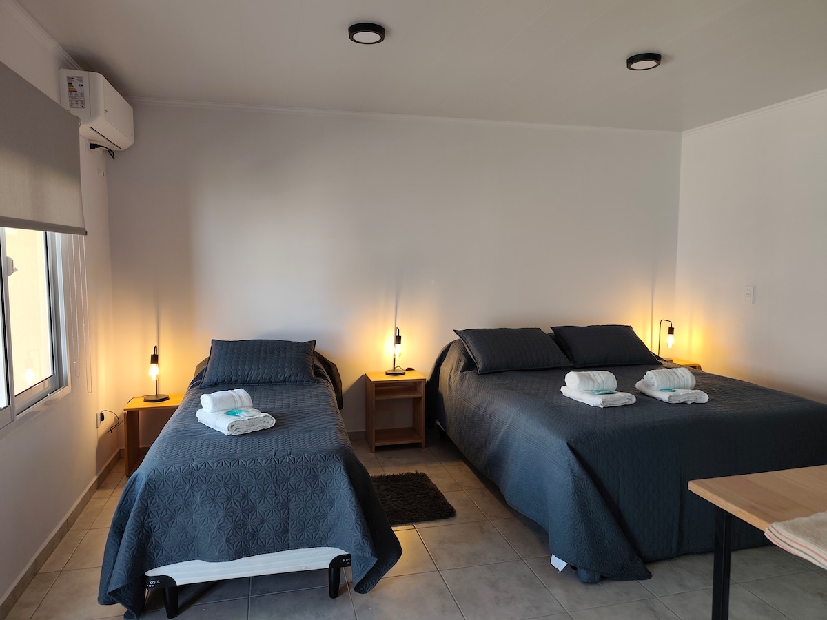 फक्त 5 युनिट्सच्या कॉम्प्लेक्समधील अगदी नवीन स्टुडिओ अपार्टमेंट. जास्तीत जास्त 3 लोकांसाठी आरामदायक आणि व्यावहारिक जागा, ज्यामध्ये डबल बेड + सिंगल बेड किंवा 3 सिंगल बेड्सचा पर्याय आहे. यामध्ये मायक्रोवेव्ह, इलेक्ट्रिक केटल, डिशेस आणि झटपट जेवणासाठी ब्रेकफास्ट बार असलेले एक छोटे किचन आहे. शॉवर आणि मूलभूत सुविधांसह पूर्ण बाथरूम. वायफाय आणि एसी समाविष्ट आहे. स्मार्ट लॉकसह स्वतःहून चेक-इन आणि चेक-आउट, वेळा ठरवण्याची गरज नाही.