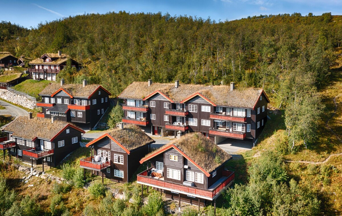 ट्रोल्सलॉटेट हे सुंदर लोकेशन असलेले एक मोठे आणि प्रशस्त शॅले आहे. शॅलेमध्ये 5 बेडरूम्स आणि एक लॉफ्ट आहे आणि 12 -14 लोकांना सामावून घेऊ शकते. शॅलेमध्ये बसण्याची जागा, पियानो, दगडी फायरप्लेस आणि एक मोठे डायनिंग टेबल असलेली एक मोठी लिव्हिंग रूम आहे. याव्यतिरिक्त, इंडक्शन हॉबसह सुसज्ज किचन आहे, आईस मेकरसह रेफ्रिजरेटर आहे. तळमजल्यावर शॉवर, टॉयलेट, सॉना आणि स्वतंत्र बसण्याची जागा असलेले एक मोठे बाथरूम आहे