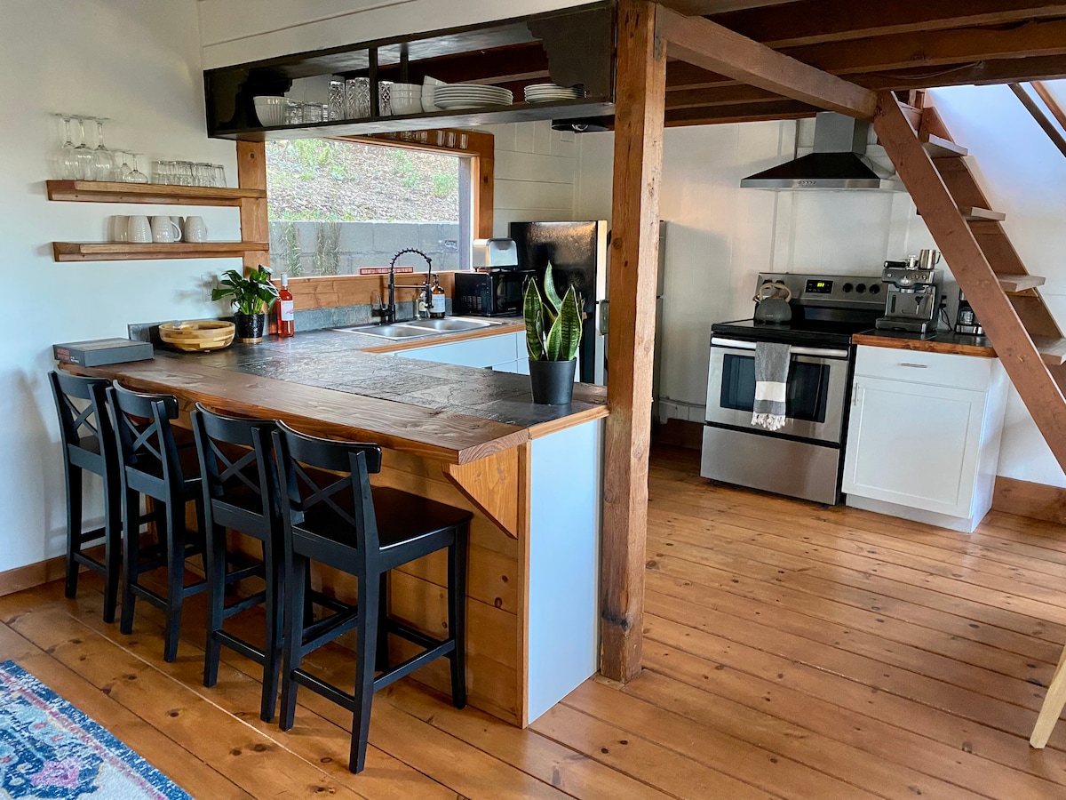 आजूबाजूच्या टेकड्यांच्या दृश्यांसह झाडांच्या मधोमध असलेले अप्रतिम विनामूल्य स्टँडिंग केबिन. विनामूल्य वाईनच्या बाटलीवर लाकूड जळणाऱ्या स्टोव्हचा आनंद घ्या. बाहेर आंघोळ करा (खाजगी) आणि आमच्या नवीन बॅरल स्टीम सॉना (खाजगी) मध्ये आराम करा किंवा सोफ्यावर चित्रपट पहा. मुले किंवा तुमच्या फररी मित्रांसह या आणि त्यांना केबिनच्या दरवाजांच्या अगदी बाहेर लांब हायकिंगवर घेऊन जा आणि जंगली मोर जमिनीवर फिरत आहेत. आवारात खाजगी मसाज बुक करा किंवा अंगणात योगा करा. सर्वांसाठी काहीतरी!