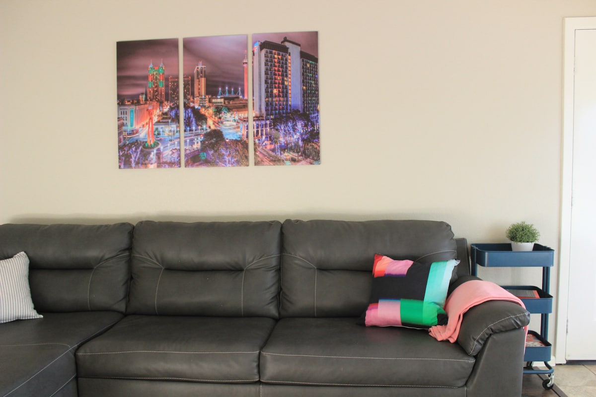 हिप अप - आणि - येत असलेल्या डिग्नोविटी हिलच्या ऐतिहासिक आसपासच्या सुंदर हेस सेंट ब्रिजच्या लँडिंगवर स्थित. अलामो ब्रूवरीच्या पुढे, अलामो किंवा टोबिन सेंटरपासून एक मैल चालत, पर्ल ब्रूवरी आणि द कन्व्हेन्शन सेंटरपासून 1.3 मैल अंतरावर. स्थानिक कलाकाराच्या समकालीन कलेसह पूर्णपणे नूतनीकरण केलेले अपार्टमेंट. मेमरी फोम गादीसह किंग साईझ बेड आणि मेमरी फोम टॉपरसह सोफा बेड जो 2 अधिक झोपतो. टीव्ही, वायफाय, नवीन भांडी आणि पॅन, वॉशर आणि ड्रायरसह पूर्णपणे सुसज्ज