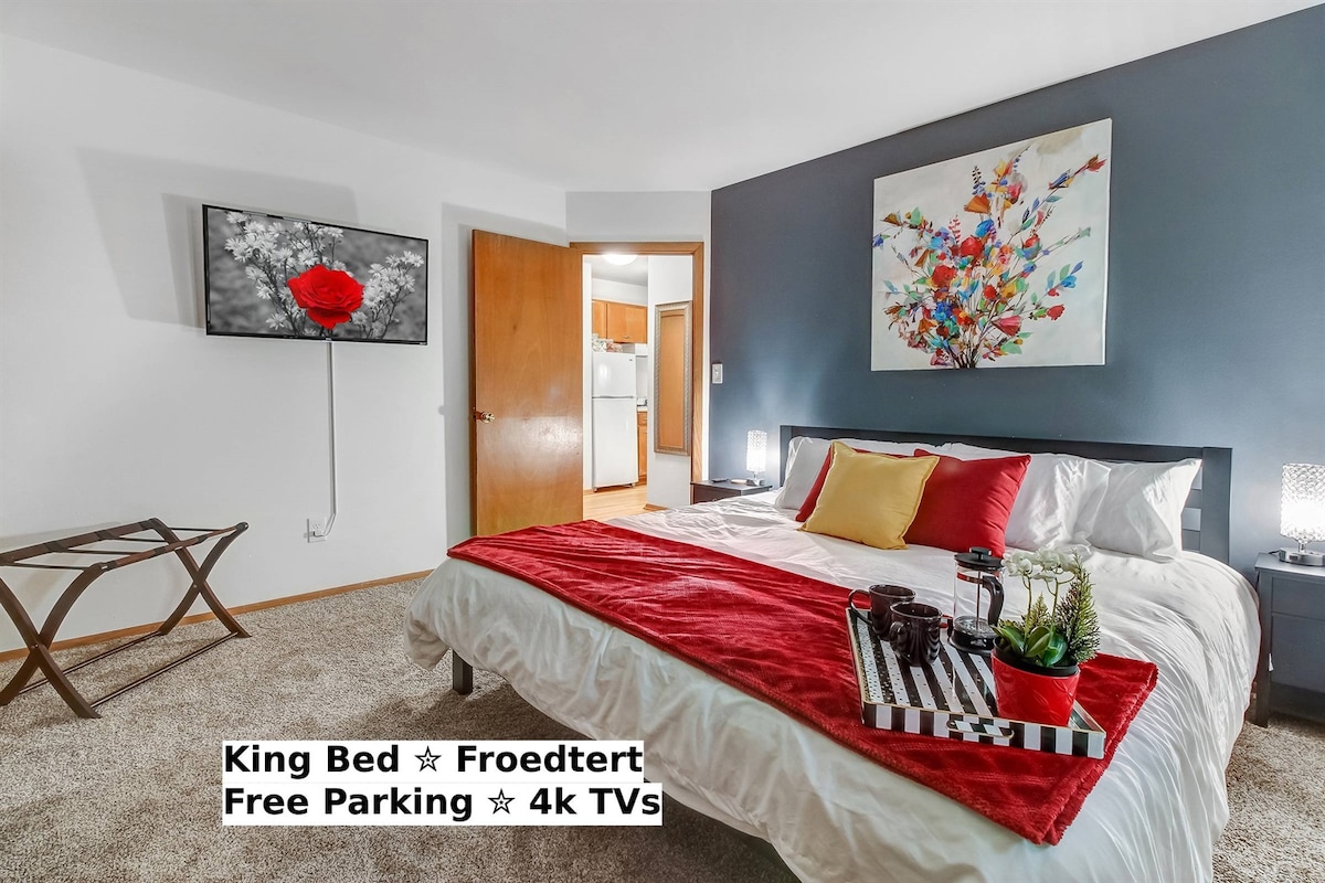 5 पैकी 4.84 सरासरी रेटिंग, 86 रिव्ह्यूजमेडिकल डिस्ट्रिक्ट अपार्टमेंट किंग बेड विनामूल्य पार्किंग लॉन्ड्री