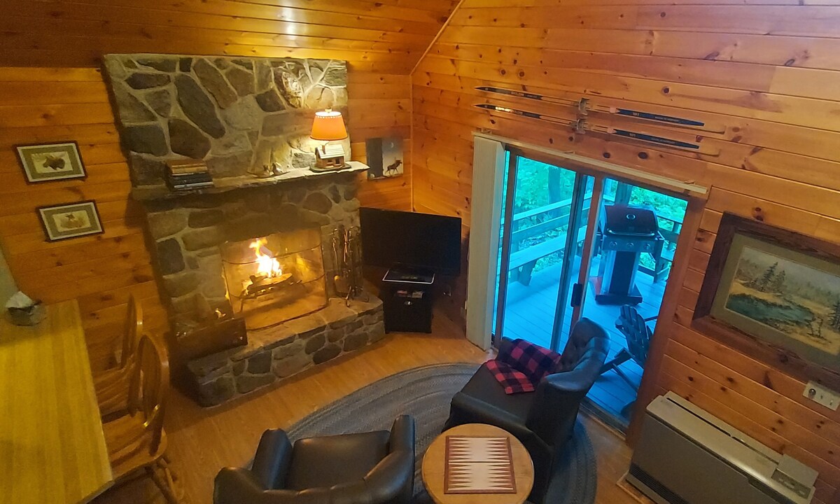 जेव्हा तुम्ही ताऱ्यांच्या खाली राहता तेव्हा या सर्व गोष्टींपासून दूर जा. हे शॅले त्याच्या ट्रेलवर आहे, ग्रामीण सेटिंगमध्ये एका लहान हलके लाकडी लॉटच्या मध्यभागी वसलेले आहे. फायर पिटचा आनंद घ्या, तुमचे स्नोमोबाईल्स, बाइक्स आणि ट्रेलर्स आणा. तुमचे जेवण तयार करण्यासाठी 55" टीव्ही आणि लहान किचनसह जागा उबदार आहे. बेडरूम लॉफ्टमध्ये आहे आणि बाल्कनीपर्यंत कॅटवॉक उघडत आहे. तुम्ही कटाहदीन आयर्न वर्क्स/जो मेरी प्रदेश आणि सेबेक आणि शूडिक तलावाजवळ असल्याने वर्षभरच्या आऊटडोअर ॲक्टिव्हिटीजचा आनंद घ्या