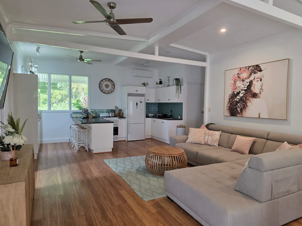 मॅंगो लॉज हे एक स्वतंत्र, स्वयंपूर्ण कॉटेज आहे जे मोसमॅन गॉर्ज आणि डेंट्री नॅशनल पार्कला लागून असलेल्या आमच्या शुगर केन फार्मवर आहे. एका विस्तीर्ण लॉनमध्ये सेट केलेले, कॉटेज आजूबाजूच्या रेनफॉरेस्ट, ट्रॉपिकल गार्डन्स आणि काठीच्या फील्ड्सकडे पाहत आहे.