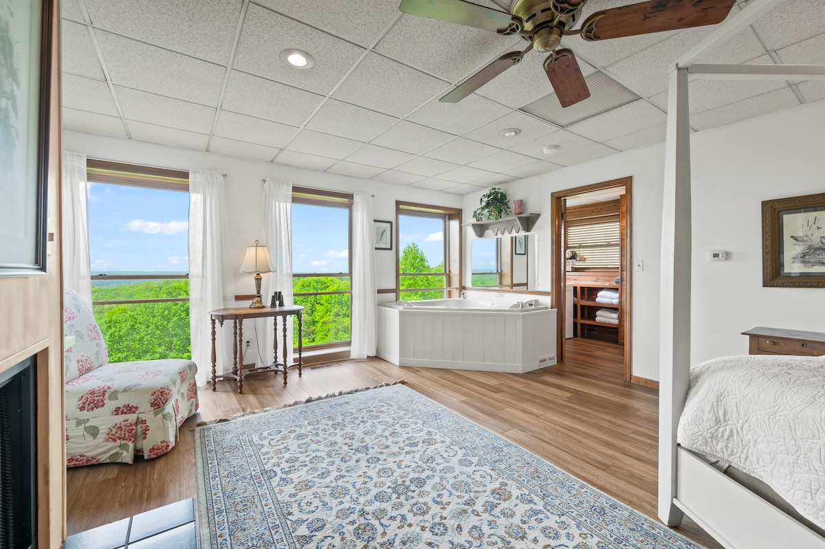 अविस्मरणीय दृश्यासह 1885 च्या आरामदायक मोहकतेमध्ये प्रवेश करा. ब्राऊन काउंटीच्या सर्वात उंच रिजेसपैकी एकावर वसलेले, एब्स केबिन ऐतिहासिक वैशिष्ट्यांसह आधुनिक सुविधा देते. जेटेड स्पा टब, सीझनल गॅस फायरप्लेस आणि स्लो, साध्या जेवणासाठी परफेक्ट असलेल्या फार्म-स्टाईल किचनचा आनंद घ्या. खाली एक किंग बेड आहे आणि लॉफ्टमध्ये एक क्वीन बेड आहे. समोरच्या पोर्चवरील रॉकर्सवर आराम करा किंवा मागच्या डेकवरून नजारा पाहा, जोडप्यांसाठी किंवा लहान ग्रुप्ससाठी एक आकर्षक सुट्टी!