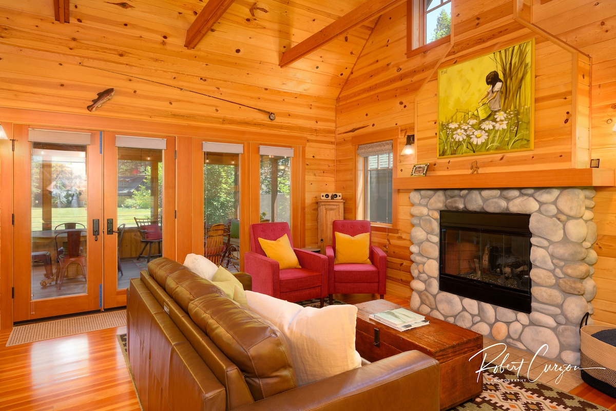 मॅकेन्झी हाऊस लोलोमा लॉजपासून अर्ध्या मैलांच्या अंतरावर असलेल्या भव्य मॅकेन्झी नदीवरील 2.5 खाजगी, शांत एकरांवर आहे. फ्लाय मच्छिमार, सायकलस्वार, हायकर्स आणि स्कीइंग करणार्यांसाठी एक नंदनवन. रिव्हरफ्रंट सॉना, हॉट आऊटडोअर शॉवर, हॉट टब आणि सुरक्षित, सुलभ नदीचा ॲक्सेसचा आनंद घ्या. रिव्हरफ्रंट डेकवरील बार्बेक्यू, पाण्याजवळ किंवा कुरणाने पिकनिक, जंगलात फिरणे, ब्लॅकबेरी निवडा. व्हॉलीबॉल किंवा हॉर्सशूज, कॅम्पफायर s'ores, हॅमॉक नॅप्स, नदीवर स्विंग करणे, डेकच्या अगदी समोर मासे पकडणे आणि बरेच काही यांचा आनंद घ्या.