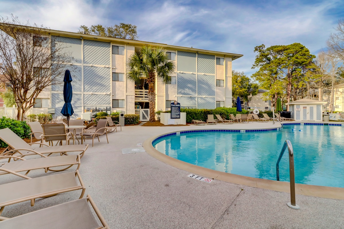 आराम करा आणि बेटाचा सर्वात लोकप्रिय विभाग असलेल्या साऊथ फॉरेस्ट बीचवर हिल्टन हेडचा आनंद घ्या. कोलिग्नी प्लाझाच्या झटपट ट्रिपसाठी आमच्या विनामूल्य बाईक्सवर राईड करा जिथे विलक्षण स्थानिक दुकाने आणि रेस्टॉरंट्स आहेत. बीच एक जलद 2 किंवा त्यापेक्षा कमी मिनिटांच्या अंतरावर आहे आणि पूल हॉलच्या अगदी खाली आहे. आमचा काँडो लहान आहे, परंतु जोडप्याच्या सुट्टीसाठी किंवा मुलांबरोबरच्या संस्मरणीय ट्रिपसाठी योग्य आहे. संपूर्ण आकाराची किचन उपकरणे आणि वॉशर/ड्रायर रूमसह स्वत: ला घरी बनवण्यात मदत करण्यासाठी आमच्याकडे आवश्यक असलेले सर्व काही आहे.