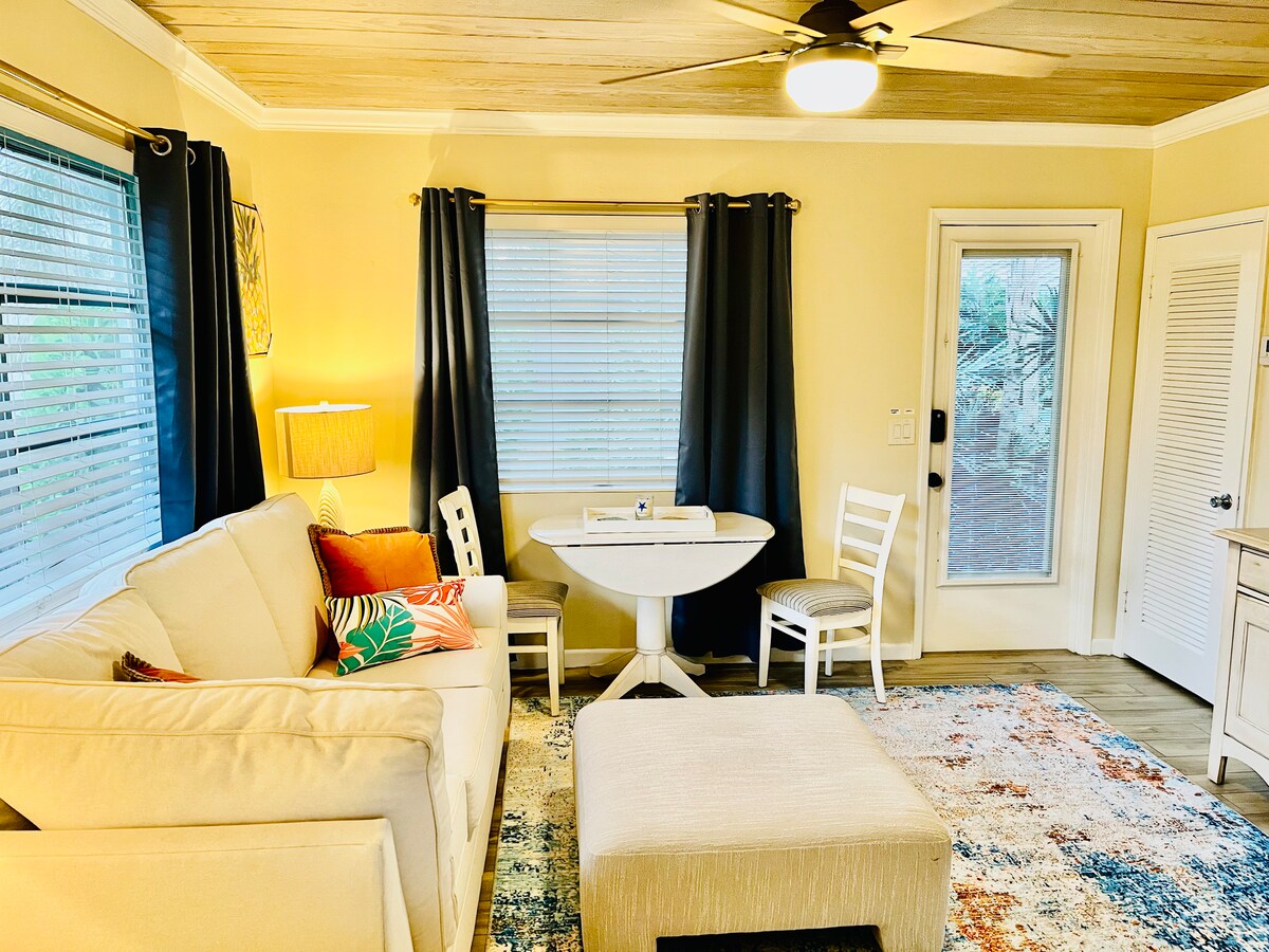 बेडरूमचा 1 बेडरूमचा काँडो थेट गरम स्विमिंग पूलसह इंट्राकोस्टलवर स्थित आहे. या युनिटमध्ये काँडोमधून वॉटर व्ह्यू नाही परंतु पॅटीओ/पूल भागातील इंट्राकोस्टल वॉटरवेचे अप्रतिम दृश्ये आहेत. गोदीतून अप्रतिम सूर्यास्त घेऊन यॉट्स चालताना पाहण्याचा आनंद घ्या. घरून काम करा, बीचपासून 1 ब्लॉक! शांत आणि शांत. अनेक दुकाने आणि स्थानिक सुविधांपर्यंत चालत जाण्याच्या अंतरावर! एकत्र प्रवास करणाऱ्या जोडप्यांसाठी, तरुण कुटुंबांसाठी आणि मित्रमैत्रिणींच्या ग्रुप्ससाठी योग्य.