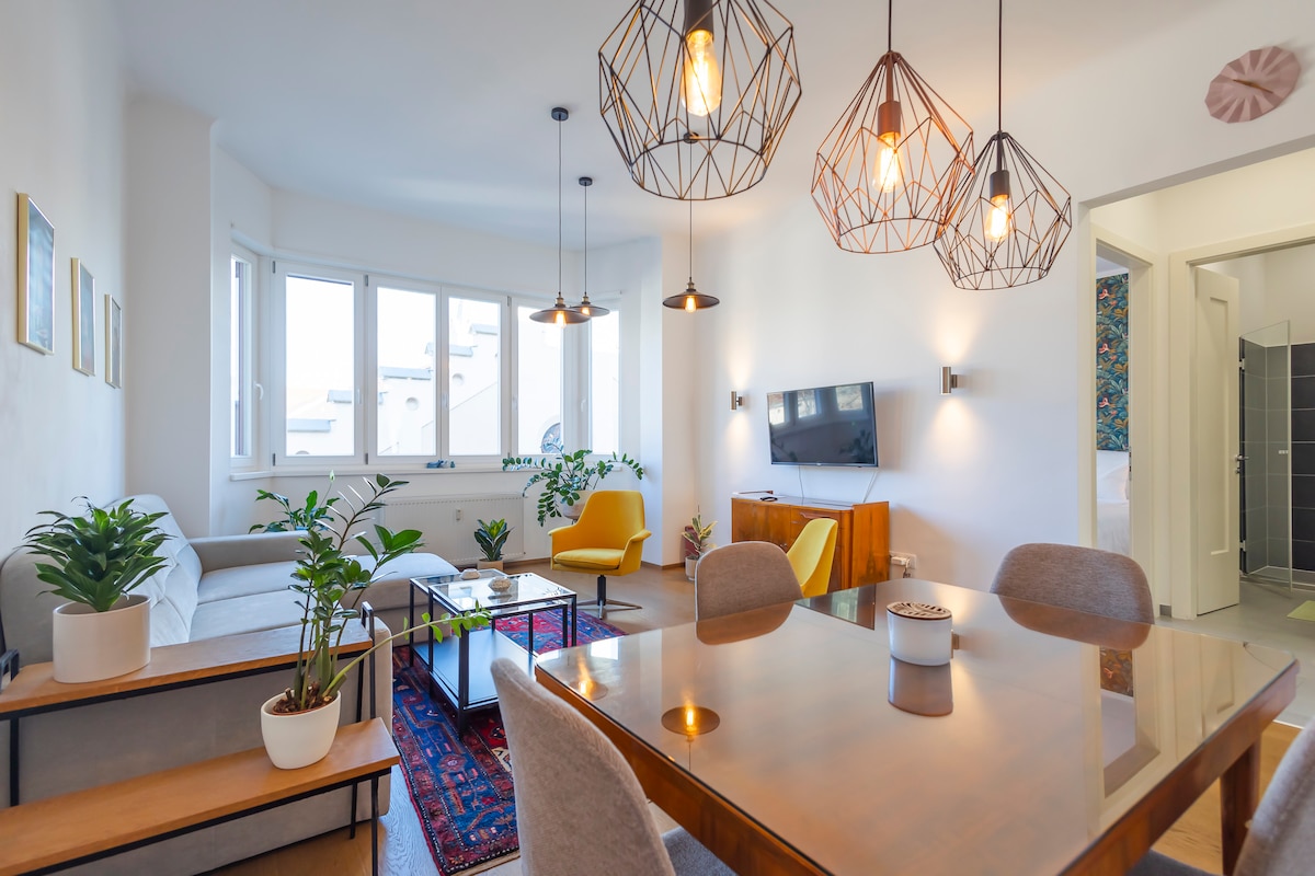 स्टाईलिश एक बेड विशाल 75sqm अपार्टमेंट मध्य शतकातील सुंदर घरात स्टाईलिश डिझाइनसह पूर्णपणे नूतनीकरण केले गेले आहे. अपार्टमेंट तिसऱ्या मजल्यावर आहे आणि बिल्डिंगमधील अतिशय शांत भागात लिफ्ट आहे. तुमच्या दाराजवळील शहरातील सर्वोत्तम बार, पब, रेस्टॉरंट्स, संग्रहालये, गॅलरी, डिझायनर कपड्यांचे बुटीक, दुकाने आणि ऐतिहासिक आर्किटेक्चर असलेल्या बुडापेस्टच्या सर्वात फॅशनेबल भागांपैकी एकामध्ये स्थित आहे. अपार्टमेंटमध्ये एक बेडरूम, एक लिव्हिंग एरिया, पूर्णपणे सुसज्ज किचन आणि एक बाथरूम आहे.