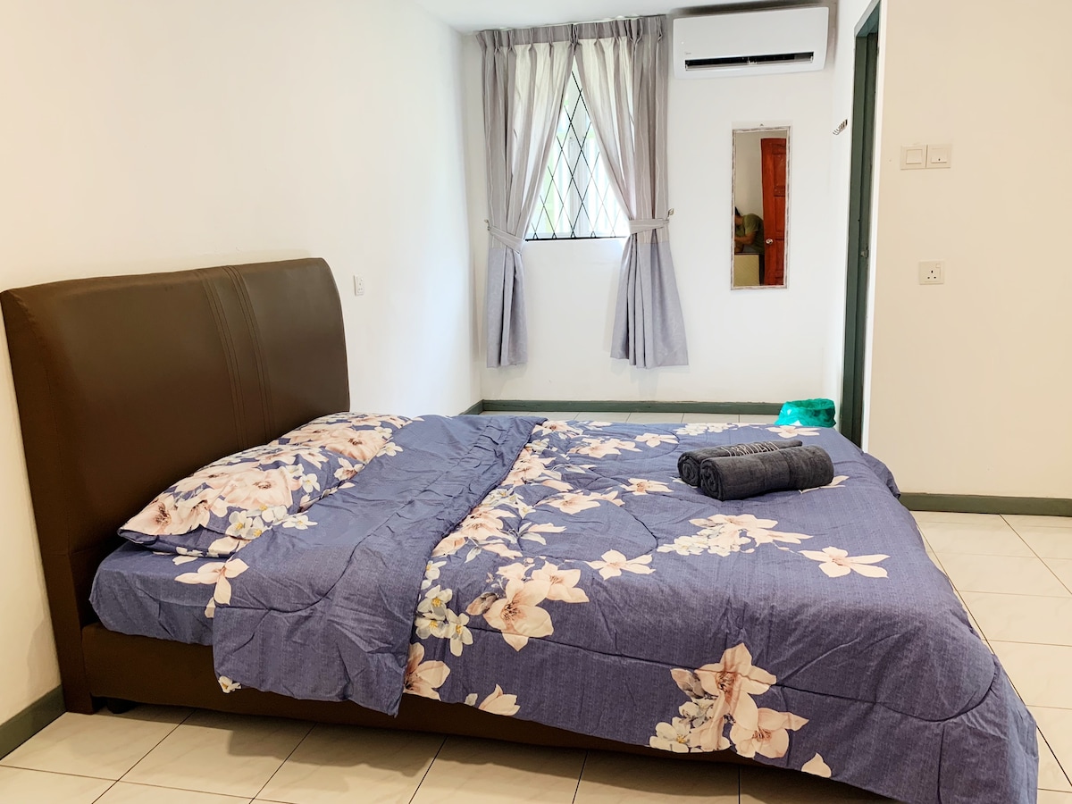 स्वयंपूर्ण आणि पूर्णपणे वातानुकूलित 2 बेडरूमचा गेस्ट सुईट तुमच्या सर्व प्राण्यांच्या आरामदायक गोष्टींनी सुसज्ज; किमान सजावट आणि आरामदायक रंगांनी डिझाइन केलेला. ***काँडो/अपार्टमेंट/फ्लॅट/हॉस्टेल/शॉपलॉट नाही *** लोकेशन: तंजुंग अरु, कोटा किनाबालू सिटी सेंटर आणि एअरपोर्टच्या मध्यभागी वसलेले एक समुद्रकिनारा उपनगर. तंजुंग अरु टाऊन, दुकाने, खाद्यपदार्थ, कॅफे, उद्याने, लायब्ररी, सार्वजनिक वाहतूक आणि तंजुंग अरु बीचपर्यंत चालत जाणारे अंतर.