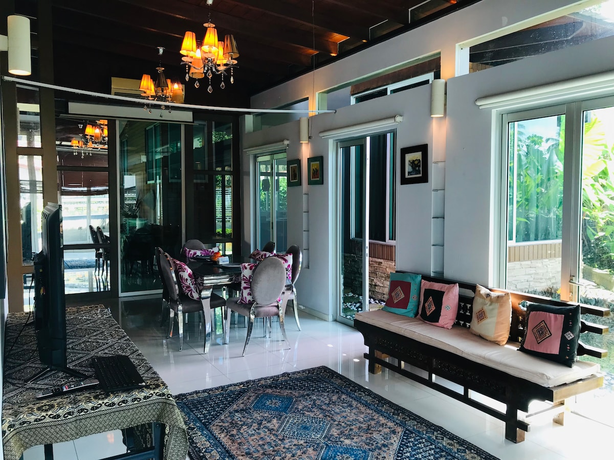 प्रशस्त, 4 बेडरूम्सचे घर, उबदार वातावरण, कुचिंग शहराजवळ (10 मिनिटे ड्राईव्ह), मासे आणि भाजीपाला मार्केटजवळ (5 मिनिटे ड्राईव्ह). चांगल्या रेस्टॉरंटने वेढलेले (थाई फूड , येमेन फूड, स्टीम बोट रेस्टॉरंट, इंडोनेशियन फूड, मॅक डॉनल्डन, केएफसी). कार किमान अतिरिक्त शुल्कासह दिली जाऊ शकते.