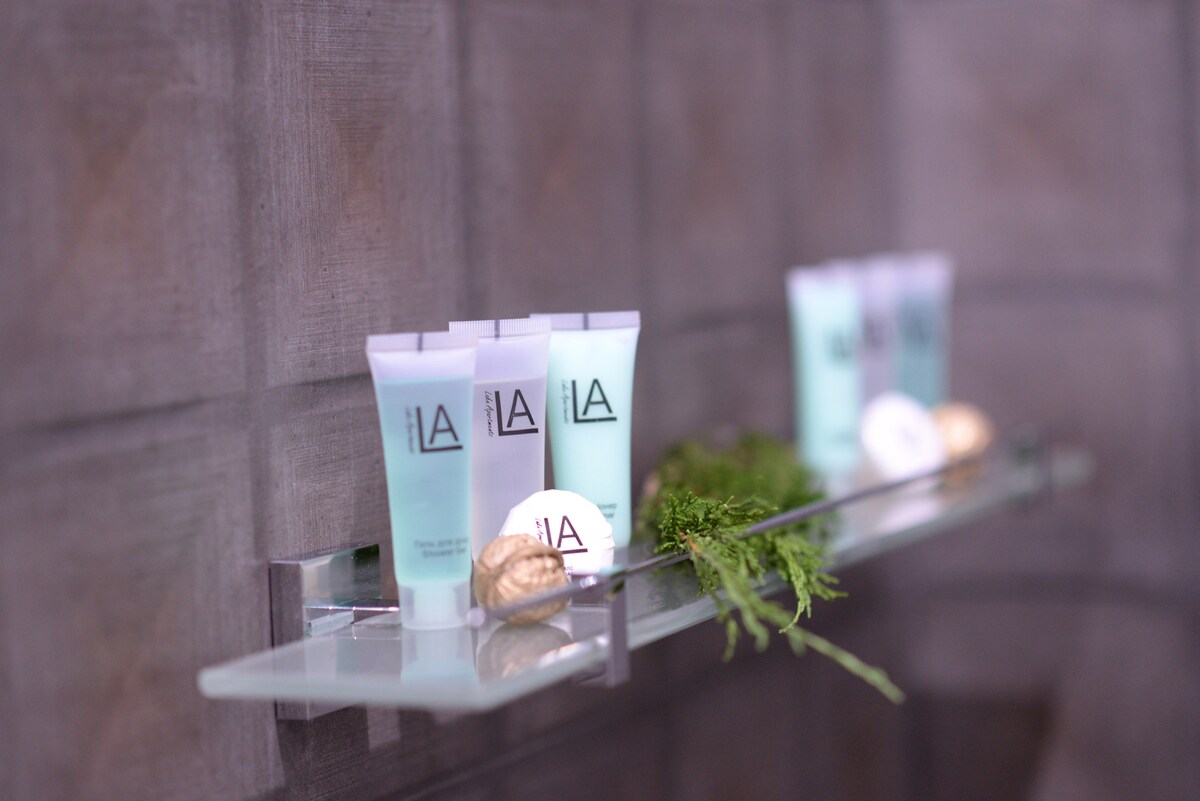 बिझनेस क्लास बिल्डिंगमधील अपार्टमेंट. हलकी रंगात स्टायलिश नूतनीकरण. आरामदायी वाटण्यासाठी सर्व आवश्यक उपकरणांनी सुसज्ज करमणूक आणि बिझनेस प्रवासासाठी उत्तम. या घरात तीन रेस्टॉरंट्स (युरोपियन, इटालियन आणि भूमध्य पाककृती) आहेत; स्पोर्ट्स हॉल; गार्डेड पार्किंग. नोव्हसचे एक मोठे सुपरमार्केट घरापासून 2 मिनिटांच्या अंतरावर आहे. 5 मिनिटांच्या चालण्यामध्ये एक शॉपिंग सेंटर "चेस्ट" आहे ज्यात एक आधुनिक सिनेमा मल्टीप्लेक्स आहे. आयसीसी 200 मीटर अंतरावर आहे.