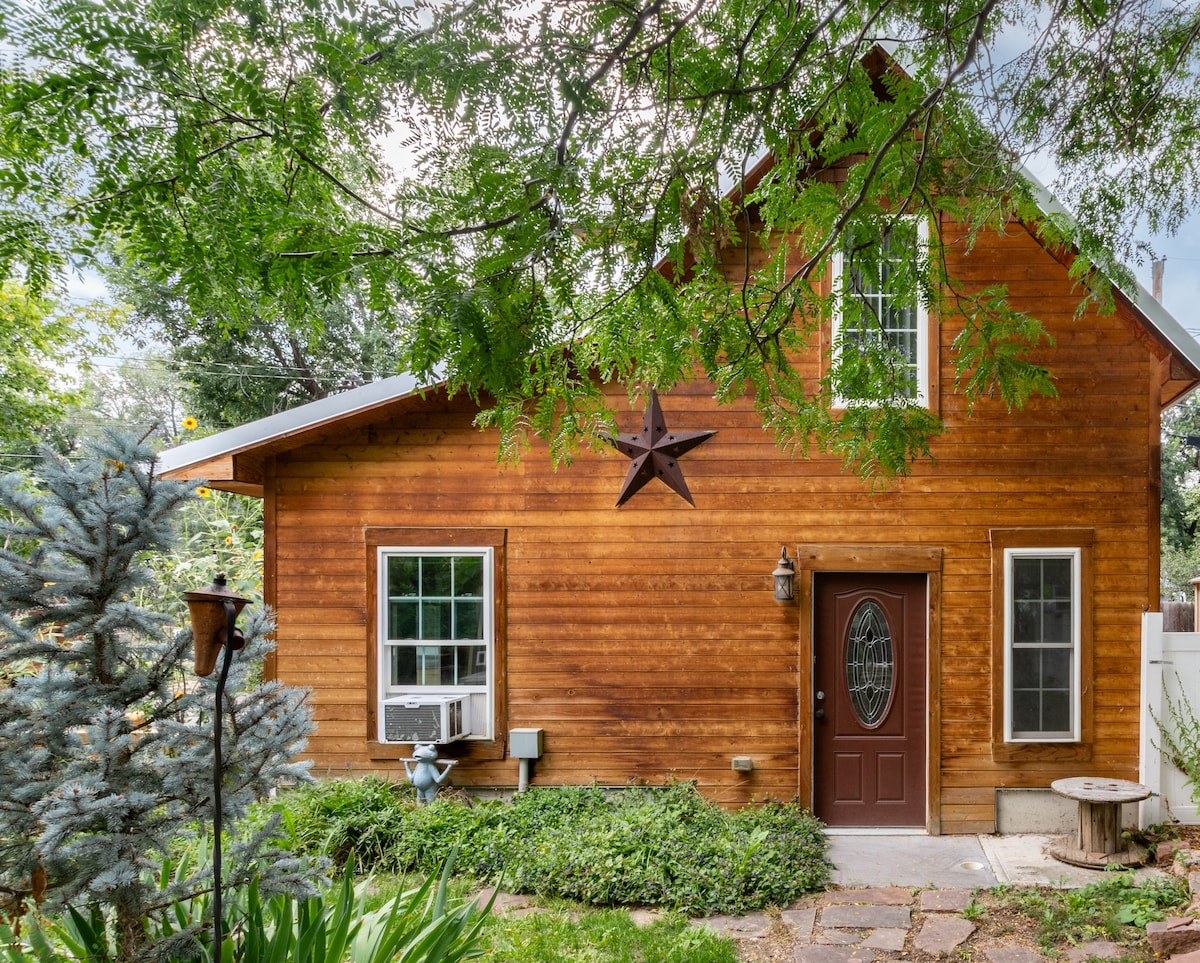 बोल्डर मोहक! भव्य ऐतिहासिक डाउनटाउन 2 - BD, 1 - BA ने 1910 च्या दशकातील कारागीर बंगला, "ब्लफ होल" चे नूतनीकरण केले जे मध्यवर्ती बोल्डरच्या ऐतिहासिक परिसरात स्थित आहे, परंतु खाजगी - भावनिक, एका मोठ्या यार्ड आणि उंच झाडांनी वेढलेले आहे. सुंदर "जंगल" सर्वत्र स्पर्श करते. उंच छत, हार्डवुड फ्लोअर, रेट्रो - मॉडर्न "फूड्स" किचन. लाकूड फायरप्लेस, सेंट्रल एसी, 55" टीव्ही, विशाल मखमली सोफा. फास्ट फायबर ऑप्टिक इंटरनेट (2 वर्कस्पेसेस.) एका BD मध्ये कॅल किंग आहे, एका BD मध्ये एक किंग + एक जुळे (आणि जवळजवळ 2 रूम्ससारखे वाटते).